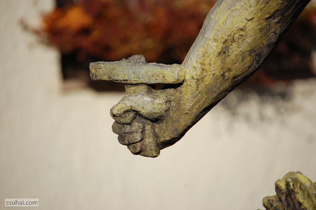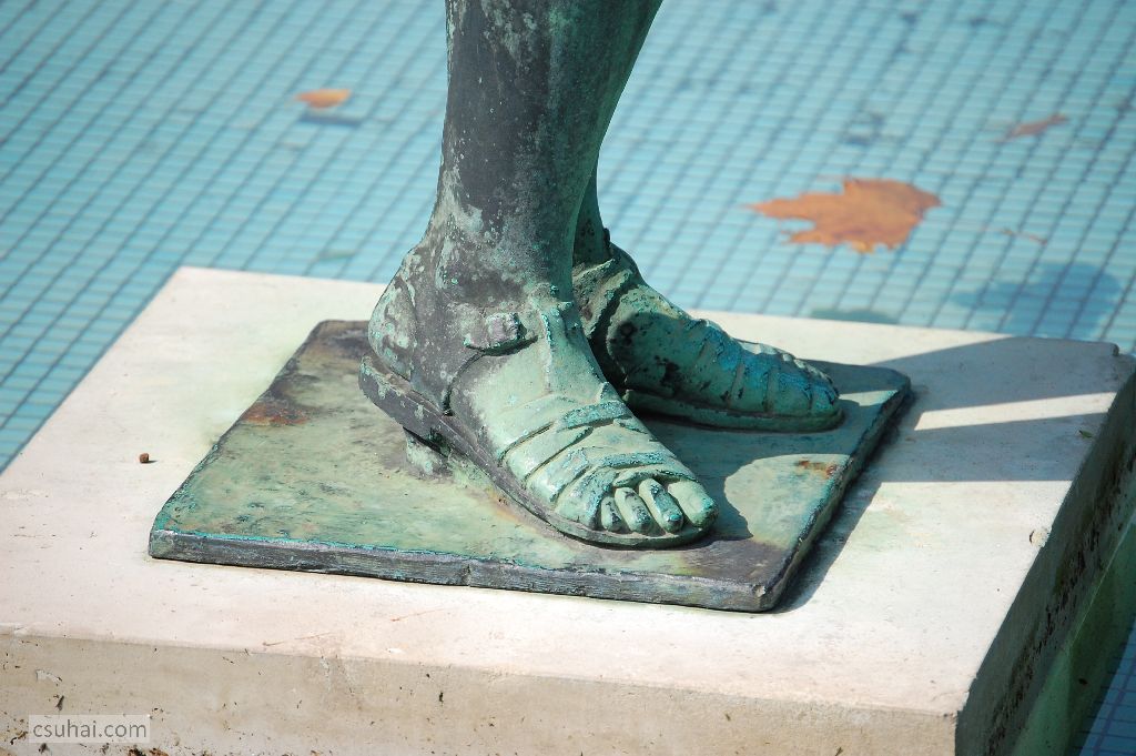 Sajnos, ez a szobor is csonka, a fiú jobb kezéből letört már a kard,