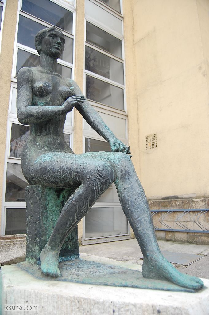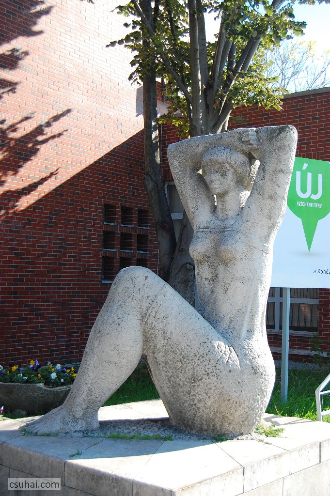 az oldalára forduló nőalak bal melle az emlékmű fennségességében csodaszépen megereszkedik;