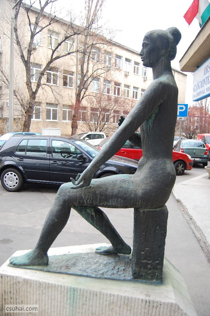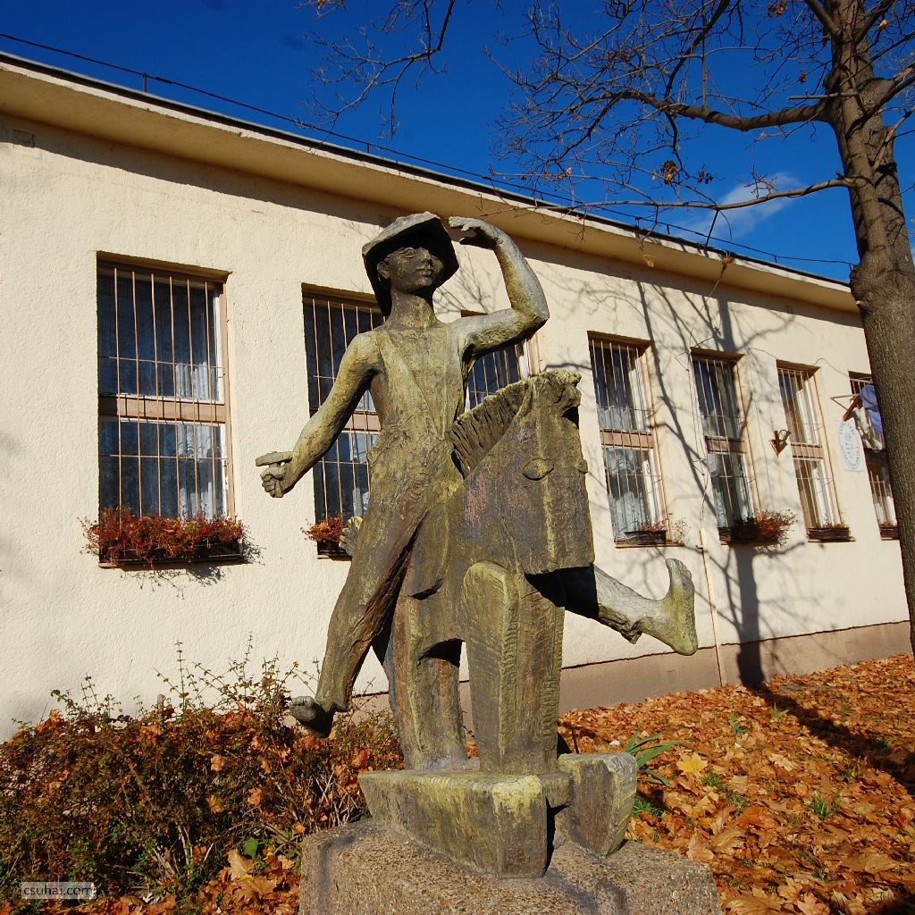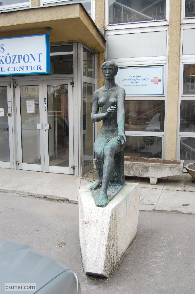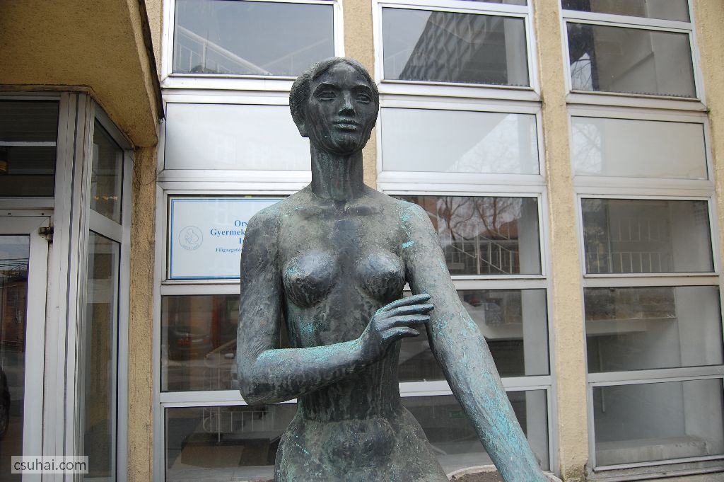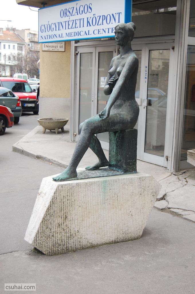 a mögötte álló ház funkciójára meglehetős egyértelműséggel utaló szoborhoz,