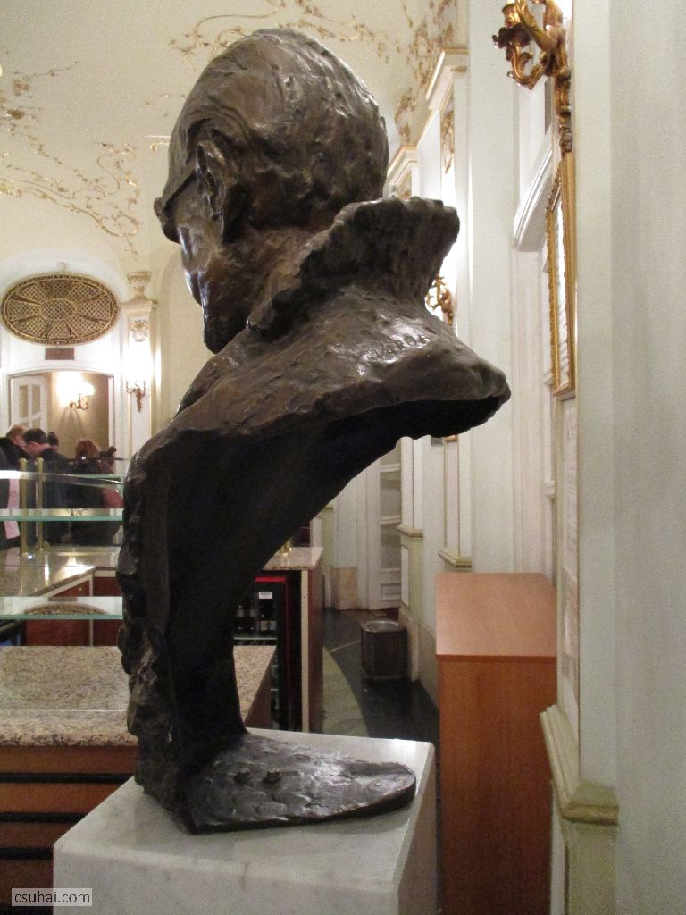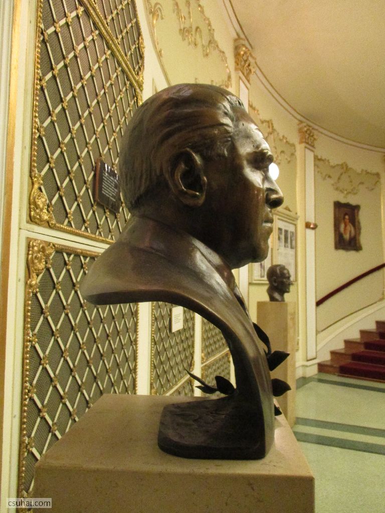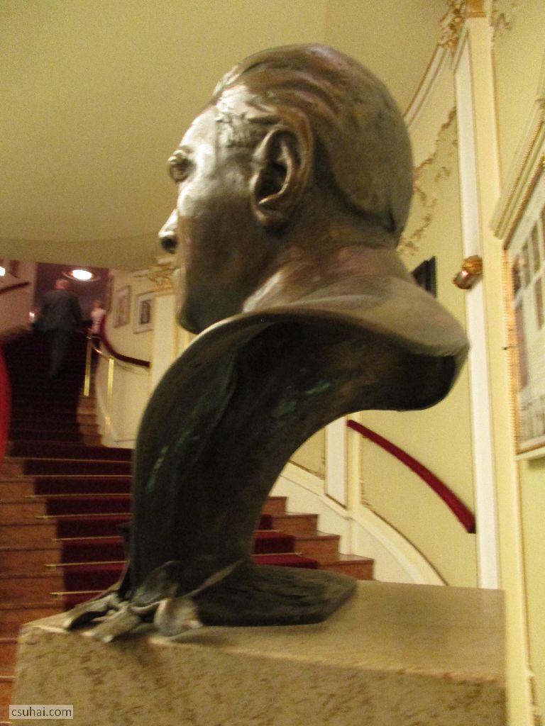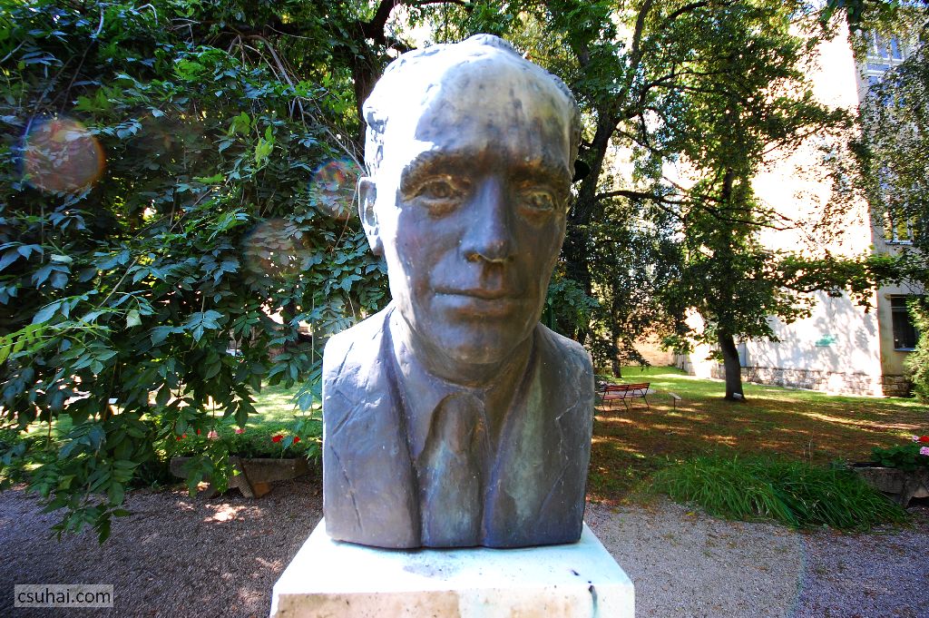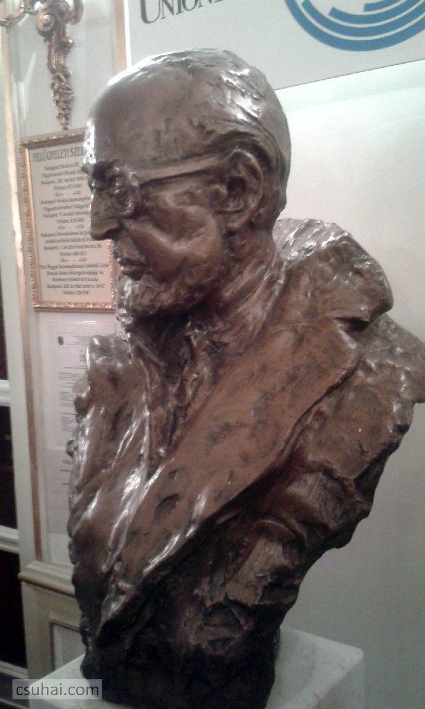rögtön az előtérben ott áll Várkonyi Zoltán mellszobra,