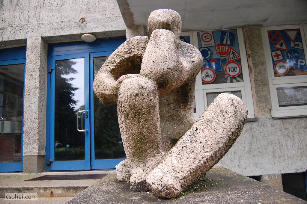 Eleinte arra gondoltam, hogy Rózsa Péter korai zalaegerszegi szobrát, az 1966-ban felállított Gondolkodót, mely ma egy sokféle vállalkozásnak, többek között autóvezetést oktató iskolának helyet adó irodaépület előtt áll (nincs különösebb zalaegerszegi helyismeretem, de nem lepődnék meg, ha ez az irodaház egykor a helyi MSZMP székháza lett volna, vidéki városokban azok váltak idővel hasonló multifunkcionális irodatelevényekké), a hátterében látható ablaküvegre ragasztott KRESZ-táblák miatt valamelyik faviccem hősévé avatom, de aztán meggondoltam magam. Rózsa Péter szobra egyfelől kiváló dolog,