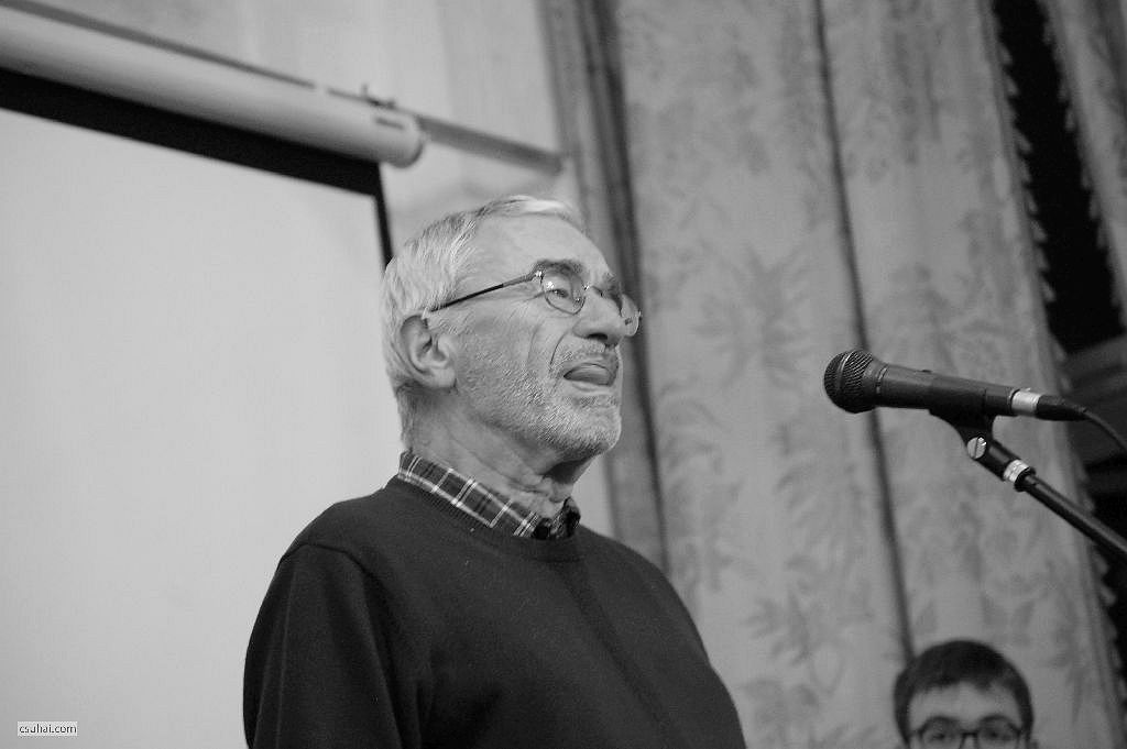 Ugyanő mikrofon előtt.