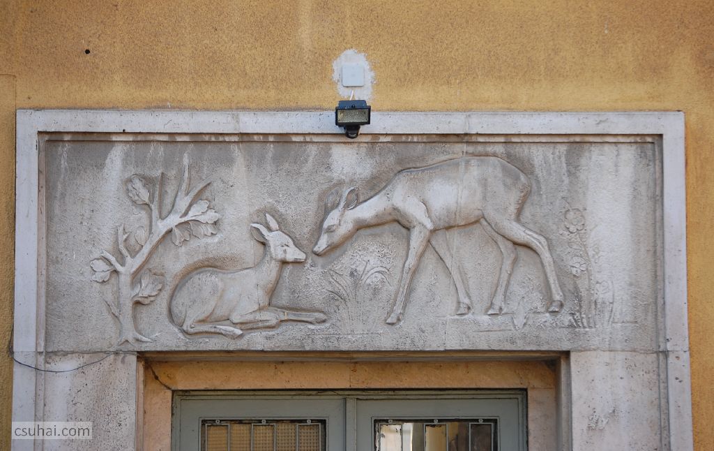 olyasmi, amit öt perccel, öt nappal vagy öt héttel később végleg elfelejtünk, hogy egyáltalán megtörtént. De hogy történt ilyen, arra emlékeztet ez a kicsi idillszobor. És hogy kerek legyen a befejezés, álljon itt zárásul Lesenyei Mártától is egy olyan, pályája elejére eső épületdíszítő dombormű-sorozat, ami szerepelt már a blogon, a pécsi négy évszak-sorozata, 1957-ből (most más sorrendben, mint eredetileg, de most is öt darabbal):