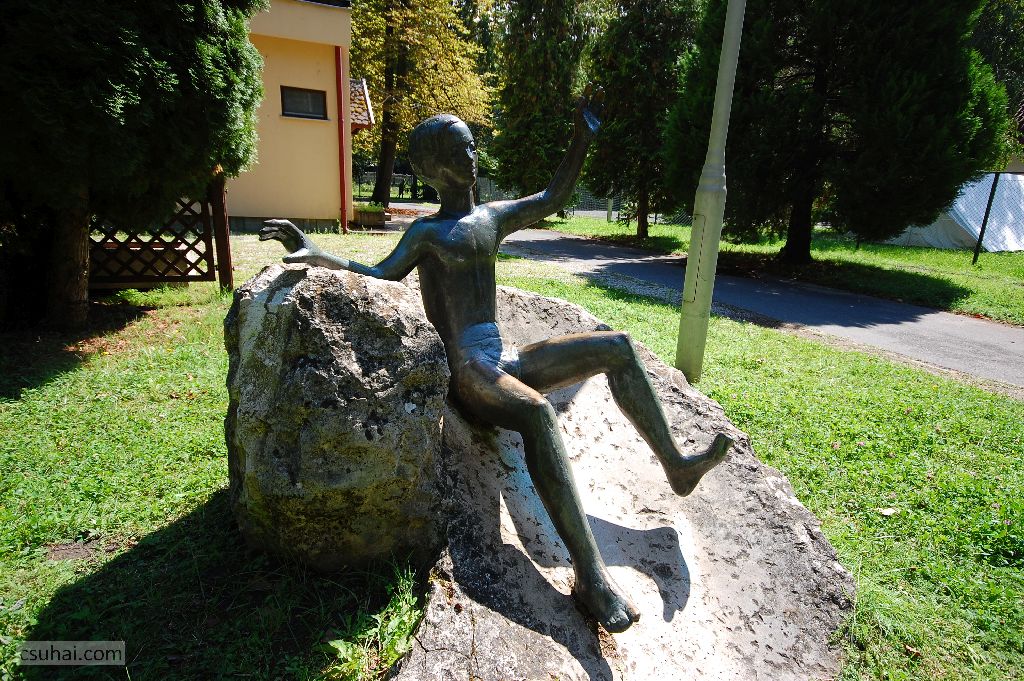 illetve Lesenyei Márta Fürdőző fiúja (a műlisták 1985-öt adják meg felállítási évéül, de épp a szobor köztérképes oldaláról kiderül, hogy a szobrászt a terv 1970-ben már foglalkoztatta, nem lehetetlen, hogy akkoriban el is készült) is érdekes dolog, vagy legalábbis olyasmi, ami valahogyan saját korában, az ezerkilenszázhatvanas-hetvenes években gyökerezik, olyasmi, amit a cukiszoborság vádja nélkül ma már nemigen lehetne és nem is nagyon kellene megcsinálni. Ezer változata lesz még persze a fürdőző kislányoknak és a helyes kisfiúknak (kiskutyával is), de ez nem ennek a posztnak a problémája.