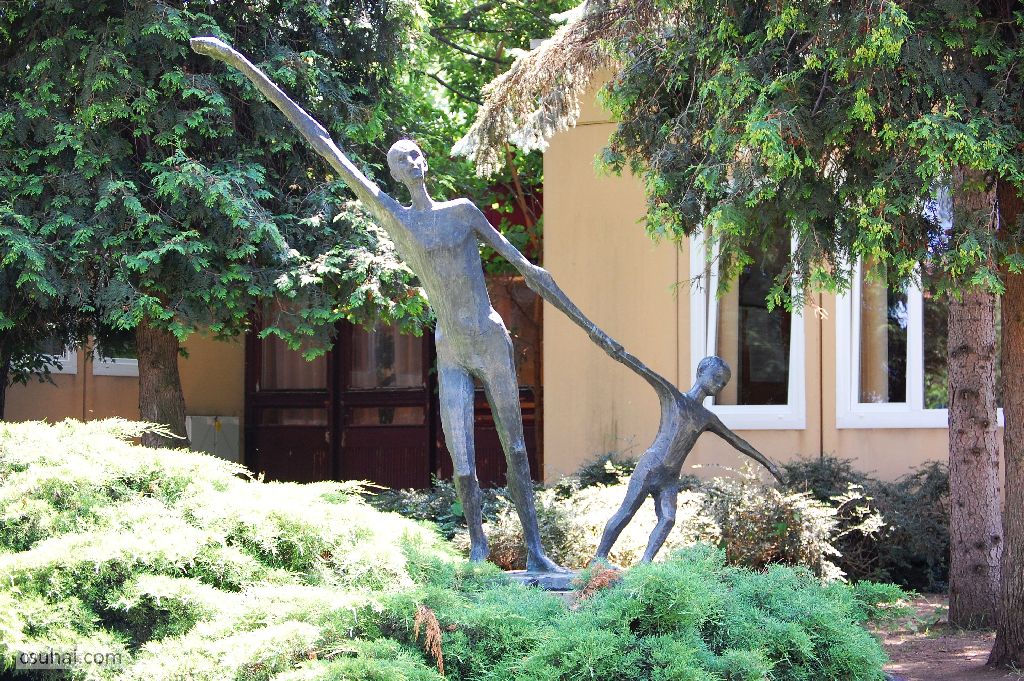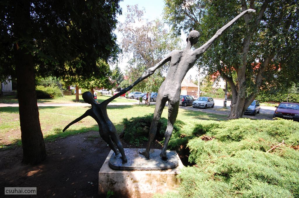 közöttük ezt a képet. A szobor utóbb az iskola kertjében maradt ugyan, de a helyére új épületet emeltek, a figura előnytelenebb, szűkösebb környezetbe került — ugyan melyik szobor (és melyik épület) ne álmodna ilyen tágas füves térről? Az épület nyert, a szobor álma és a füves terület véget ért. A figura jobb kezének tartása viszont átvezet