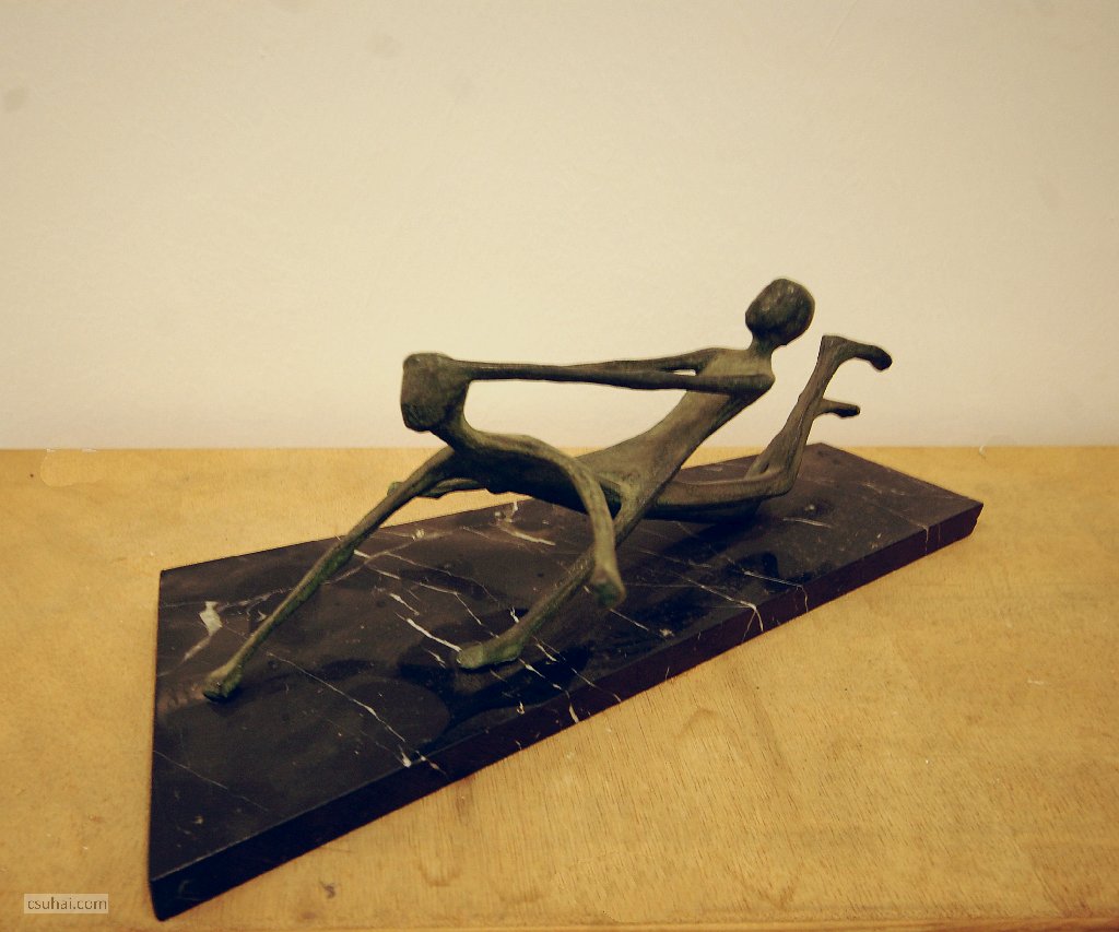 Történt, hogy 2016 húsvétjén, nagyszombat kora délelőttjén Nagy András jóvoltából bejutottam Pécsen a Janus Pannonius Múzeum szobortárába. Tudni kell, hogy a Laborcz-hagyaték egy részét (mintegy húsz tételt, bronz és gipsz kisplasztikákat, rajzokat, kisebb méretű fa-, illetve gipszdomborműveket az 1971-ben autóbalesetben elhunyt szobrász munkái közül) ott őrzik, a leltári számok tanúsága szerint egy 1969-es szerzeményt leszámítva a kis szobrok és a fa domborművek 1980-ban, az öt grafika a rákövetkező évben került be a múzeum gyűjteményébe. Megnézhettem és lefényképezhettem ezeket a tételeket, de nem akarok a dolognak itt túlságosan nagy szöveges feneket kerekíteni, úgyhogy csak azok a képek fognak most szerepelni, amelyek kisplasztikai változatban mutatják Laborcz Ferencnek a blogon önálló bejegyzésben már körbejárt szobrait. Úgyhogy, kedves elszánt olvasó, ha viszont idáig már eljutottál, akkor most ne légy rest, játssz nagyban, és kattints rá a megadott linkekre.