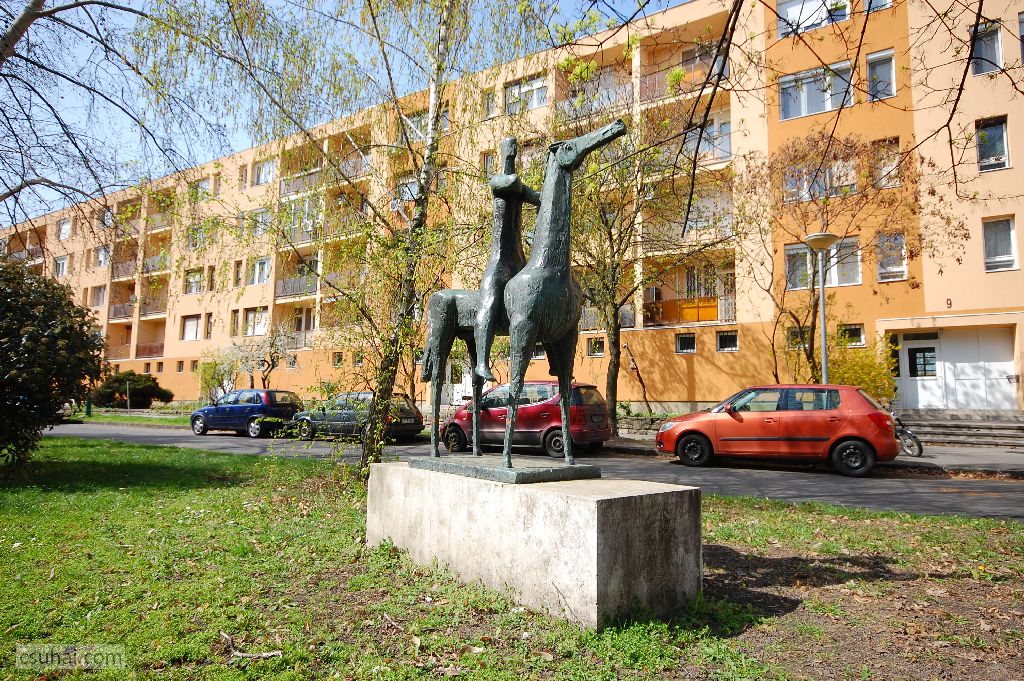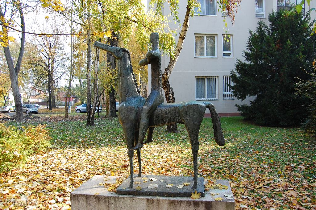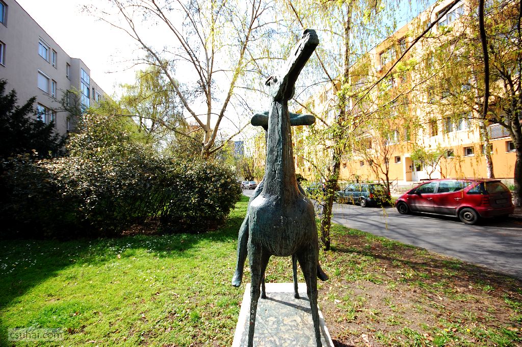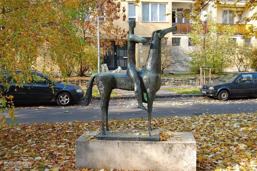 Tar István 1979 óta a zuglói Nezsider-parkban ilyen perspektívában álló lovasszobra ez,