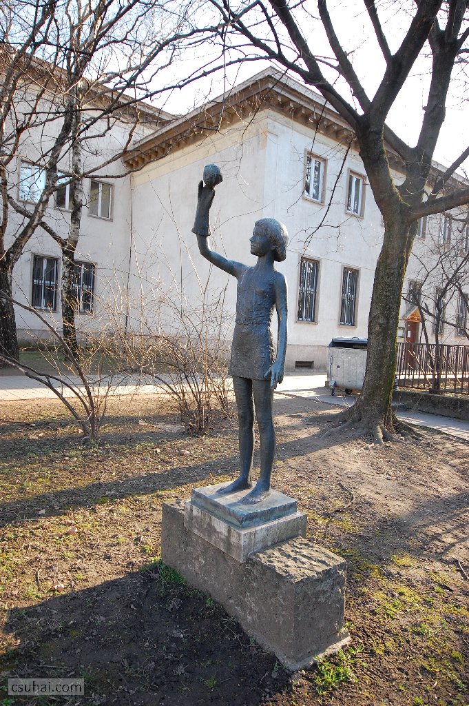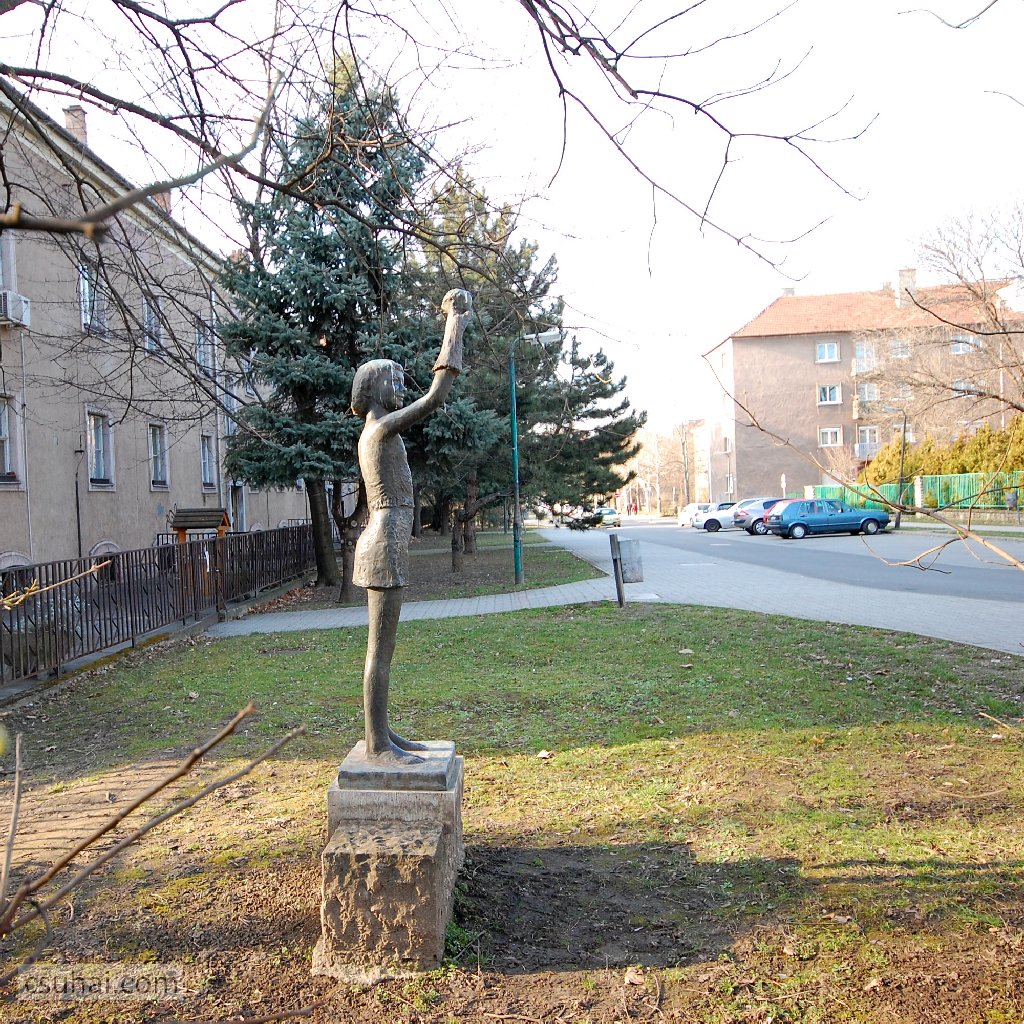 Cyránski Mária ugyancsak 1973-ban készült Hajnal című szobra áll, mely eredetileg a fentebb említett Vasmű úti Kiállítóterem elé készült, és felállításakor, a város első aktszobraként ugyanúgy egyfajta szentség megtagadása volt, mint szelídebb formában a Bábozó kislány.