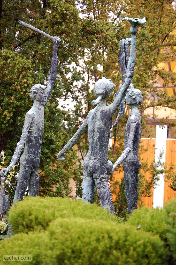 dsc_08622016-04-10_12-18-26Három magasba nyúló fiatal ember alakja, két fiú, egy lány,