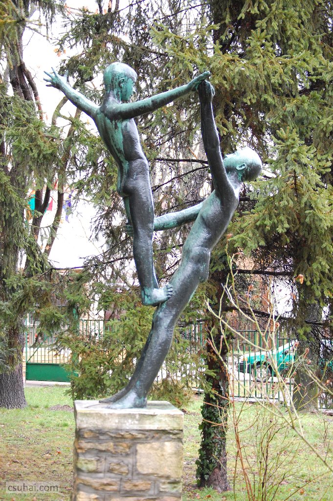 Kucs Béla Tornázó fiúkja (Budapest, Pasaréti út, Szabó Lőrinc Kéttannyelvű Általános Iskola, 1962) ugyancsak a Köztérkép gyűjteményében.