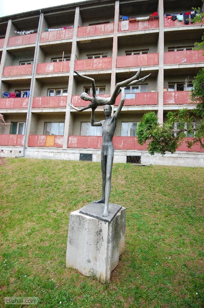 és a (valahogy érzem, ez lesz a három közül a közönségdíjas) Holdat ugató kutya, mindhárom 1958-ból, első teljes alakos szobra, az 1959-ben, az Üllői út Kőbánya felőli oldalán elterülő Szárnyas utcai lakótelepen felállított díszítőszobor, a Horgászfiú
