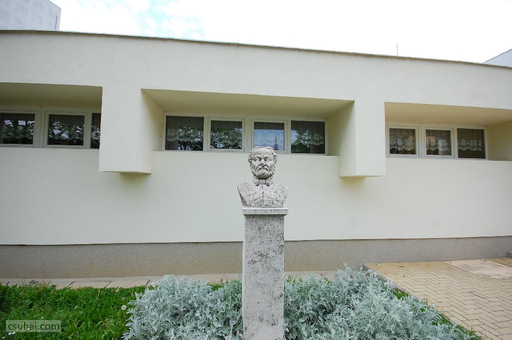 egy kissé törődött Erkel Ferenc a komlói zeneiskola utóbb szépen felújított épülete előtt (a jelek szerint nem csomagolták be elégszer telente), két évvel későbbről,