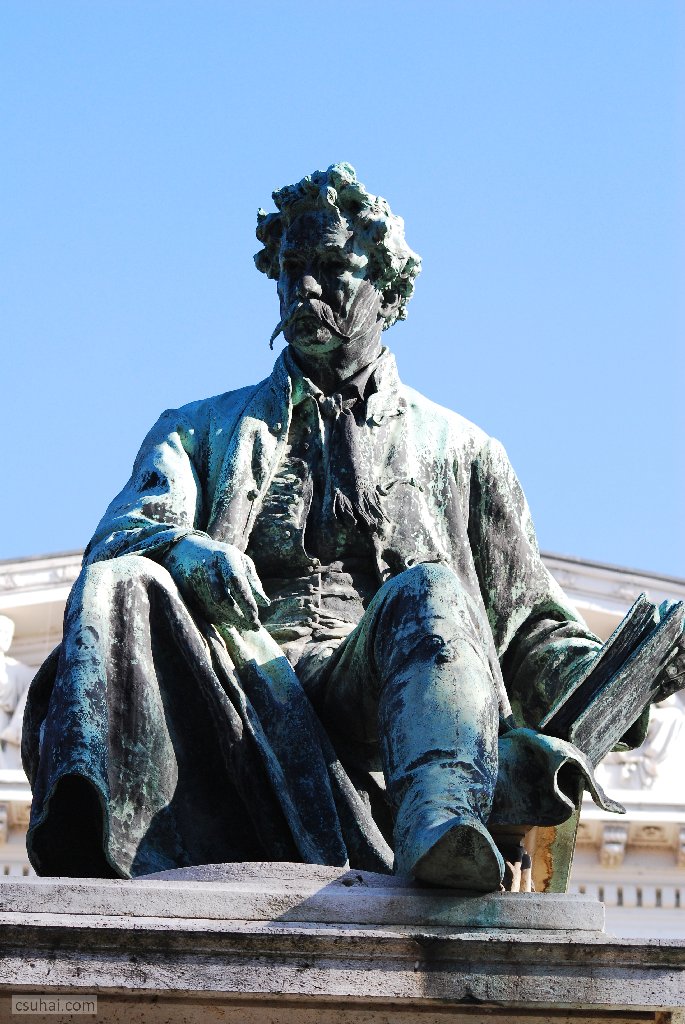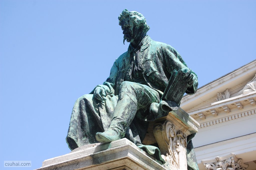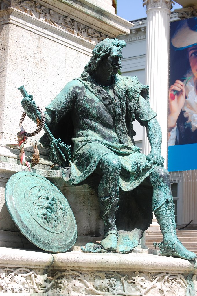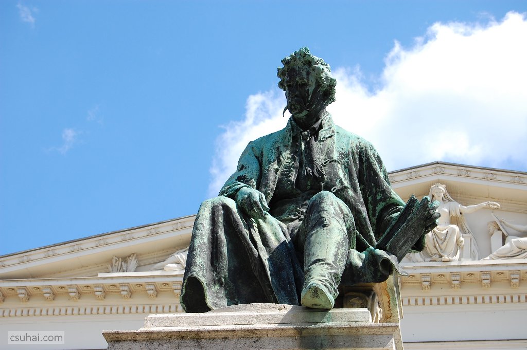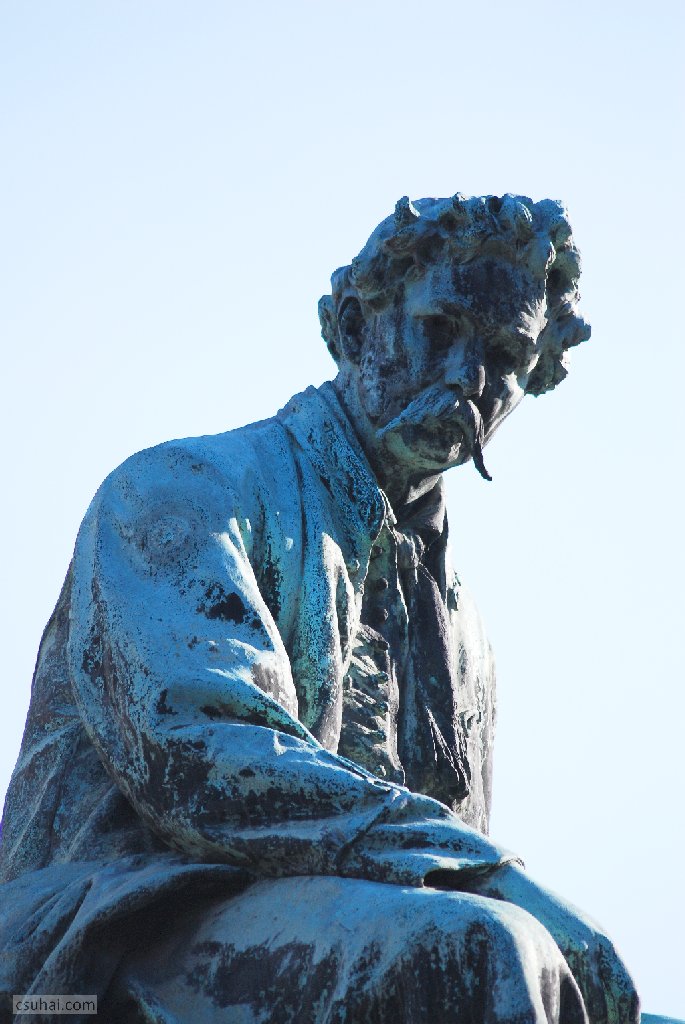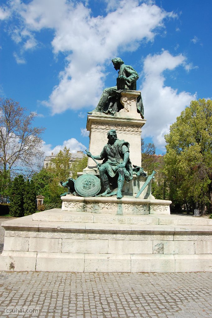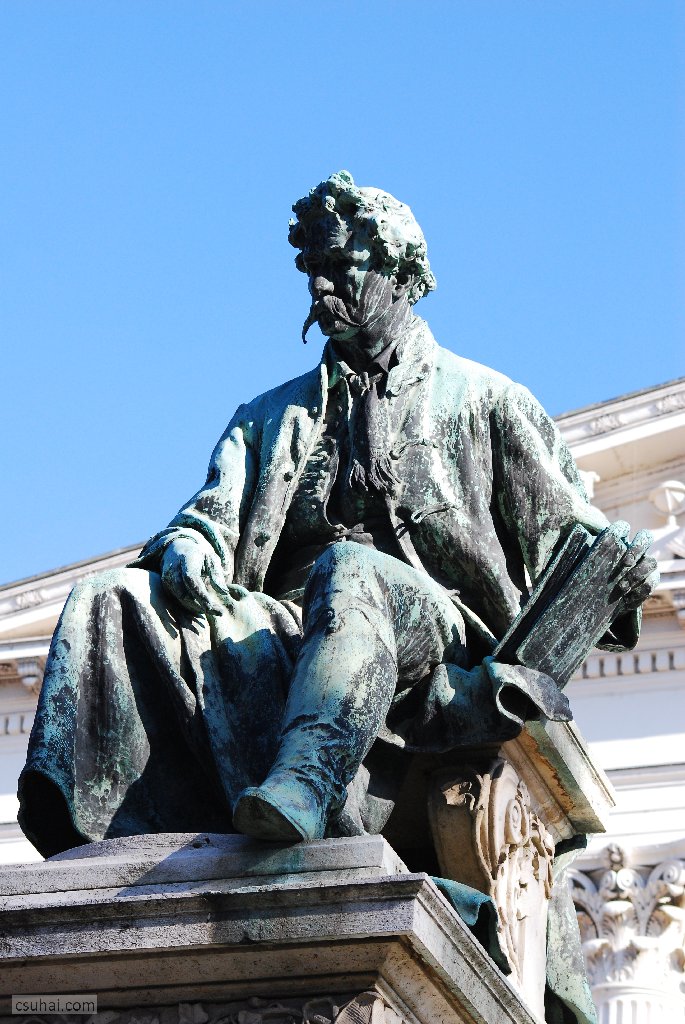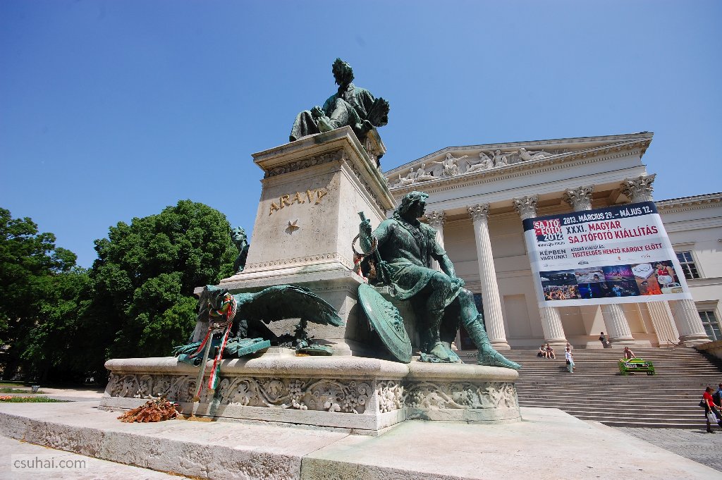 1817. március 2-án született Arany János, ma ünnepeljük születésének kétszázadik évfordulóját. Itt most mégsem költészetének vagy irodalmi munkásságának méltatása vagy mérlegelése következik, nem is idézetek csodálatos irodalmi megnyilvánulásaiból, hanem annak a demonstrálása egy gigantikus körbe-körbe keretében, amit itt a blogon is és más alkalommal is többször elmondtam már: Stróbl Alajos 1893-ban a Múzeum-kertben, a Nemzeti Múzeum épületének főhomlokzata előtt felállított szoborcsoportja a legkedvesebb szobrom. Nem azért, mert ez állna a legközelebb hozzám művészeteszményként, szobrászati korszakként, köztéri műalkotásként, nem is azért, mert ez lenne a legsikerültebb, a legszebb vagy legjobb szobor az összes közül; egyszerűen a legkedvesebb nekem, és a “legkedvesebbségnek” rengeteg eredője van — csak egyik része ennek, hogy számomra valamilyen módon a szobor tárgya, Arany János is a legkedvesebb. (Bár a jelzővel vigyázni kell, egyszer valaki figyelmeztetett, hogy nem biztos, hogy az illető dicséretnek veszi, ha kedves lánynak minősítem.) Stróbl 34 éves, mikor elnyeri a szobor megalkotására kiírt pályázatot, és 37, mikor a szobrot felavatják (Arany is még csak 76 lenne ekkor), a szoboregyüttes főalakja egy az egyben, a két mellékalak félig a hátát fordítja az avatáskor már több mint ötven éve álló múzeum főbejáratának. Arany János megérdemli ezt a helyet, sohasem moccant innen, és erre semmiféle ok nem is volt az elmúlt százhuszonnégy évben. Szóval látott ő már itt sok mindent. Sokszor fényképeztem az utóbbi években, ezekből a képekből jön most egy hosszú sorozat, és idővel, apránként majd fel fogom tölteni szöveggel is ezt a bejegyzést, Aranyról is, Aranytól is, Stróbl Alajosról is, ahogy az illik. De ma a “200” van.