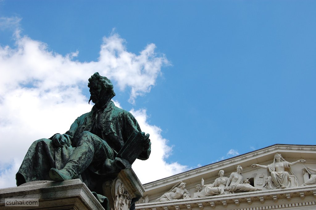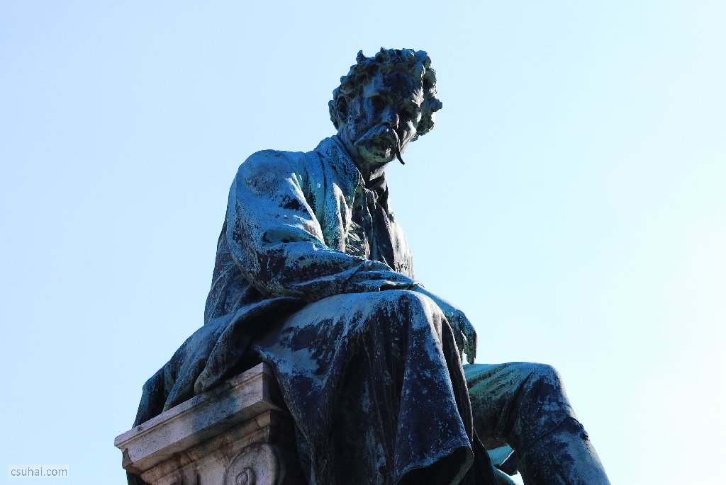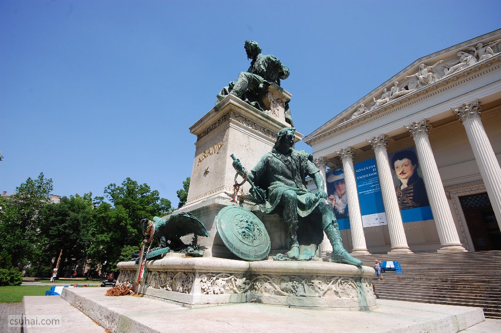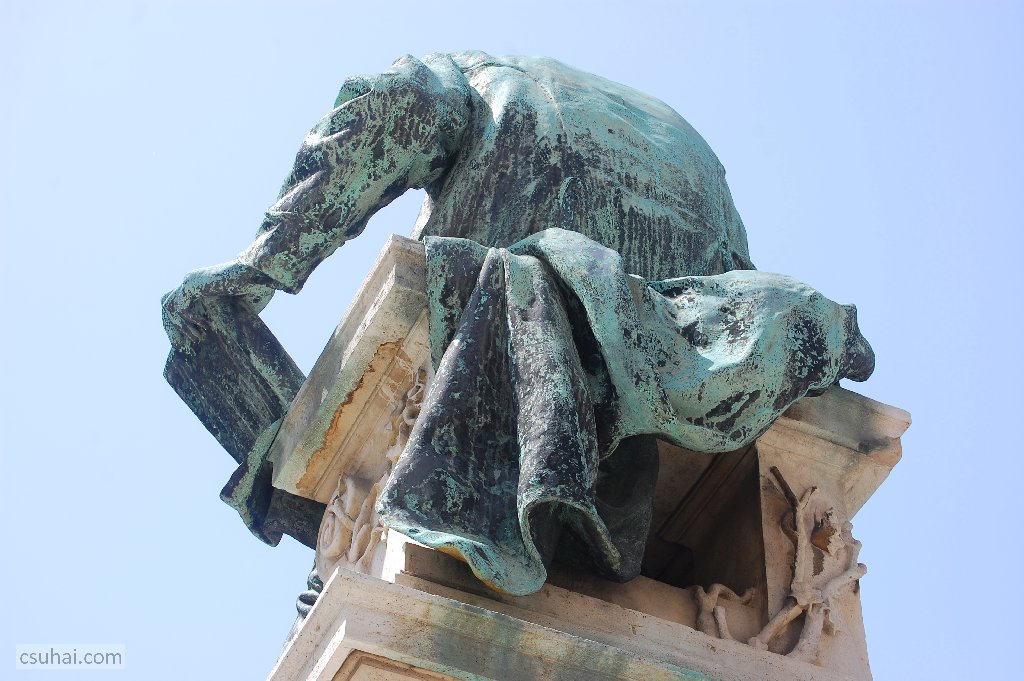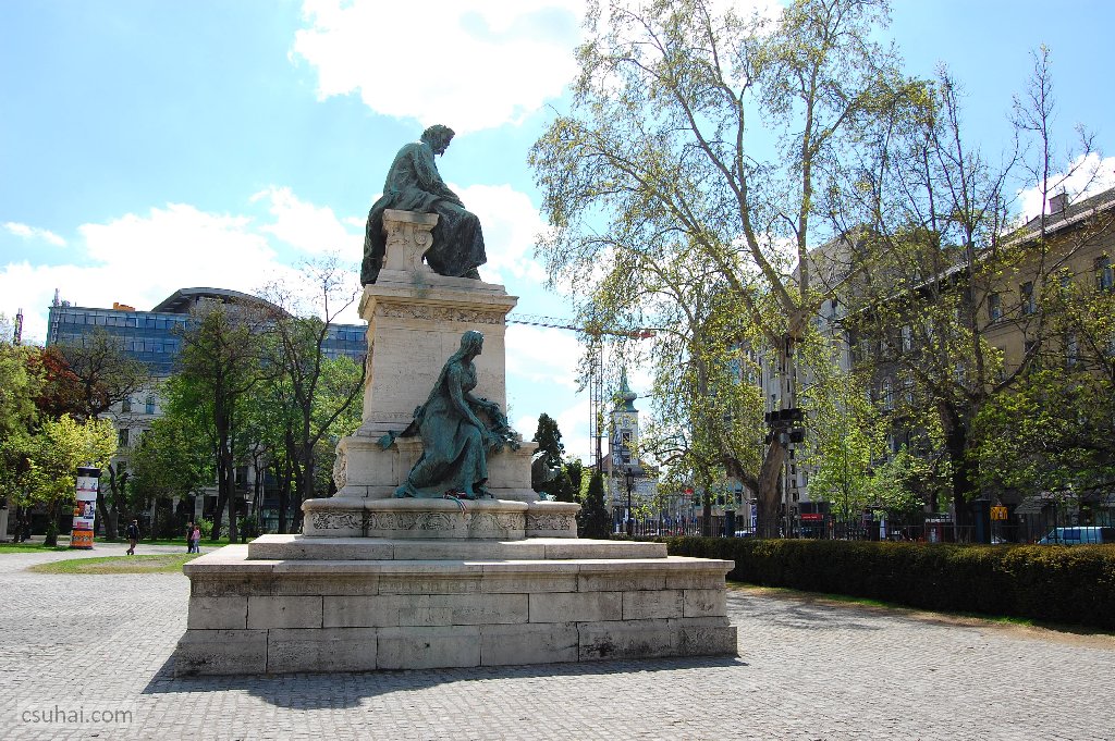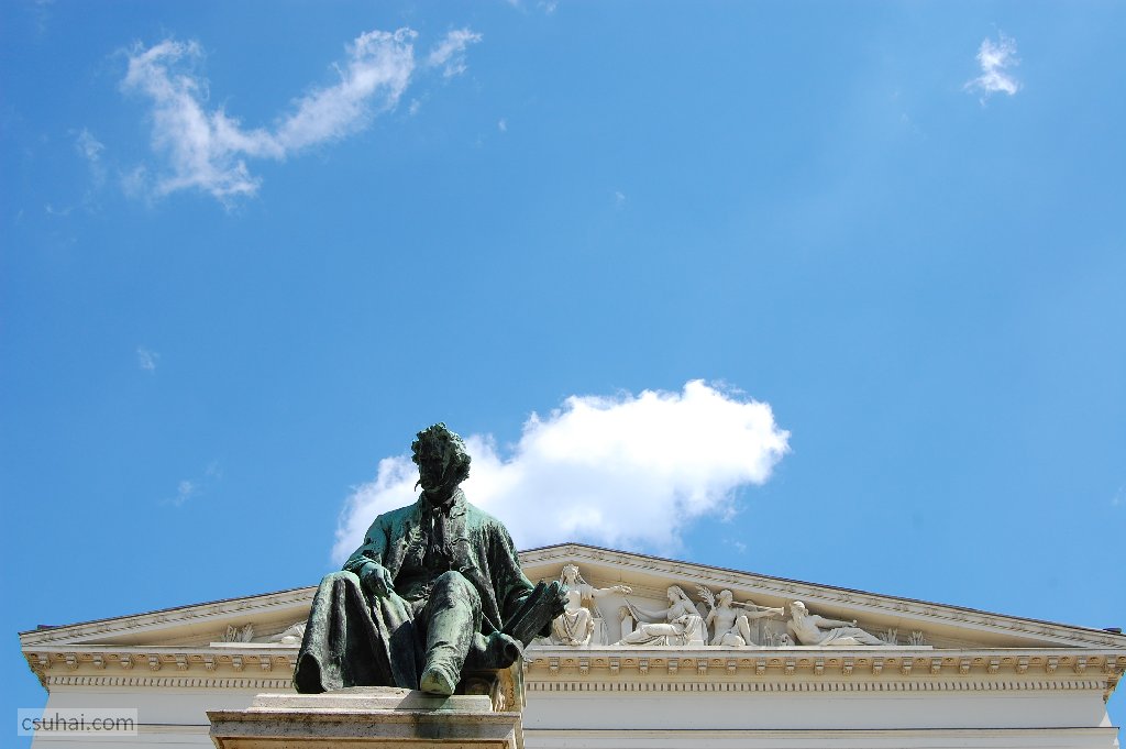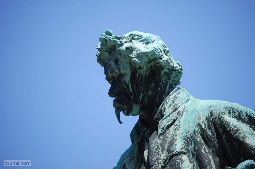 1817. március 2-án született Arany János, ma ünnepeljük születésének kétszázadik évfordulóját. Itt most mégsem költészetének vagy irodalmi munkásságának méltatása vagy mérlegelése következik, nem is idézetek csodálatos irodalmi megnyilvánulásaiból, hanem annak a demonstrálása egy gigantikus körbe-körbe keretében, amit itt a blogon is és más alkalommal is többször elmondtam már: Stróbl Alajos 1893-ban a Múzeum-kertben, a Nemzeti Múzeum épületének főhomlokzata előtt felállított szoborcsoportja a legkedvesebb szobrom. Nem azért, mert ez állna a legközelebb hozzám művészeteszményként, szobrászati korszakként, köztéri műalkotásként, nem is azért, mert ez lenne a legsikerültebb, a legszebb vagy legjobb szobor az összes közül; egyszerűen a legkedvesebb nekem, és a “legkedvesebbségnek” rengeteg eredője van — csak egyik része ennek, hogy számomra valamilyen módon a szobor tárgya, Arany János is a legkedvesebb. (Bár a jelzővel vigyázni kell, egyszer valaki figyelmeztetett, hogy nem biztos, hogy az illető dicséretnek veszi, ha kedves lánynak minősítem.) Stróbl 34 éves, mikor elnyeri a szobor megalkotására kiírt pályázatot, és 37, mikor a szobrot felavatják (Arany is még csak 76 lenne ekkor), a szoboregyüttes főalakja egy az egyben, a két mellékalak félig a hátát fordítja az avatáskor már több mint ötven éve álló múzeum főbejáratának. Arany János megérdemli ezt a helyet, sohasem moccant innen, és erre semmiféle ok nem is volt az elmúlt százhuszonnégy évben. Szóval látott ő már itt sok mindent. Sokszor fényképeztem az utóbbi években, ezekből a képekből jön most egy hosszú sorozat, és idővel, apránként majd fel fogom tölteni szöveggel is ezt a bejegyzést, Aranyról is, Aranytól is, Stróbl Alajosról is, ahogy az illik. De ma a “200” van.