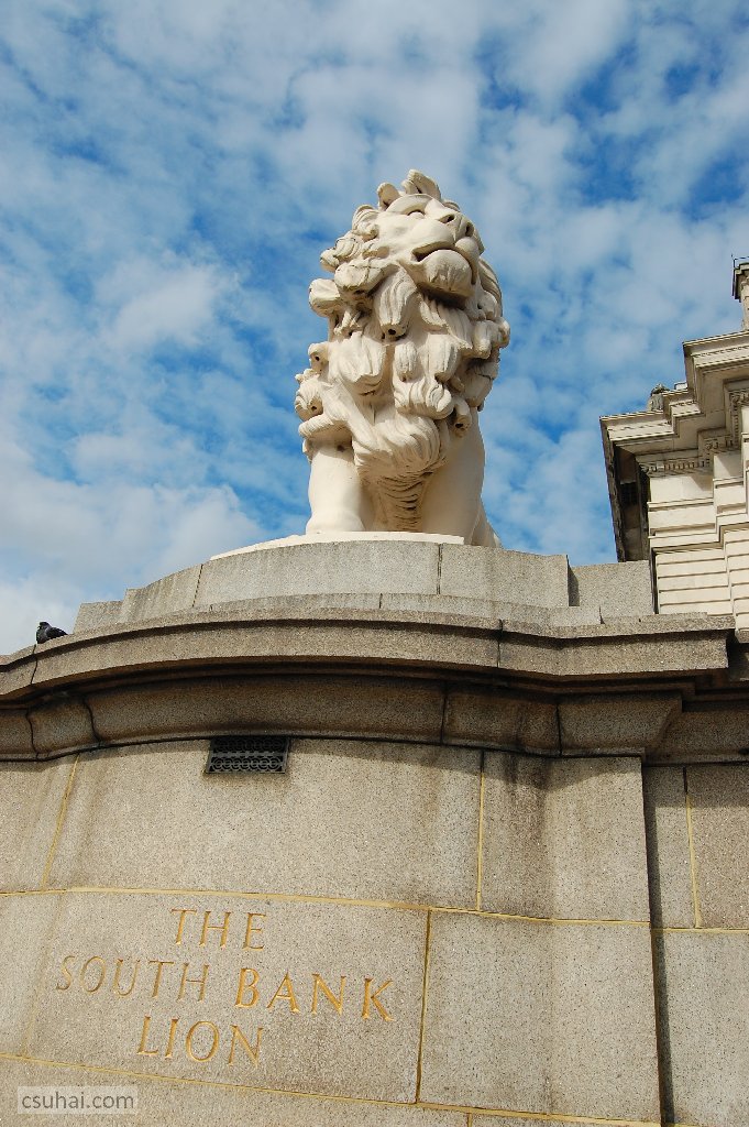 Coade-kő oroszlán és városi galambok, South Bank és északkeleti csücsök,