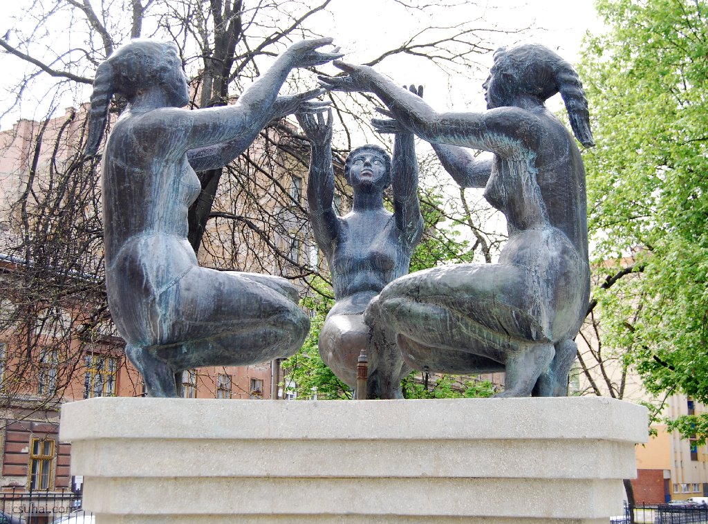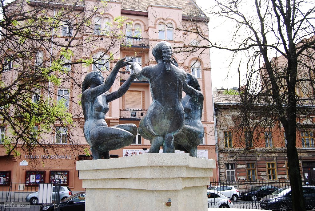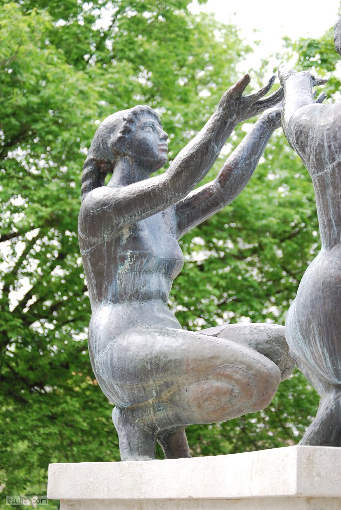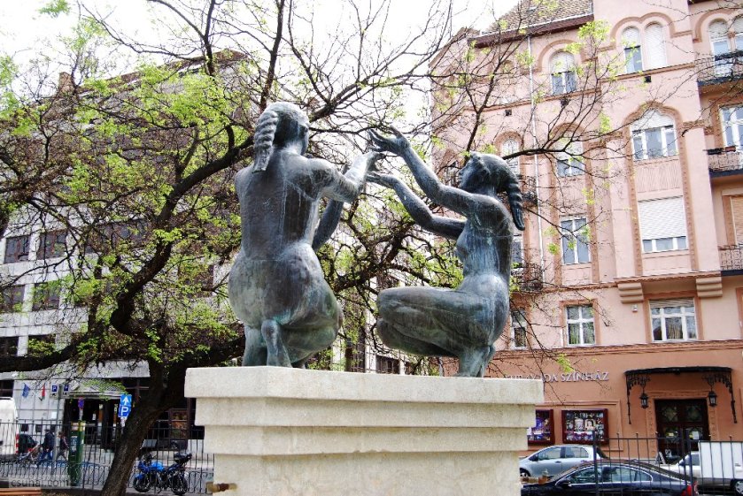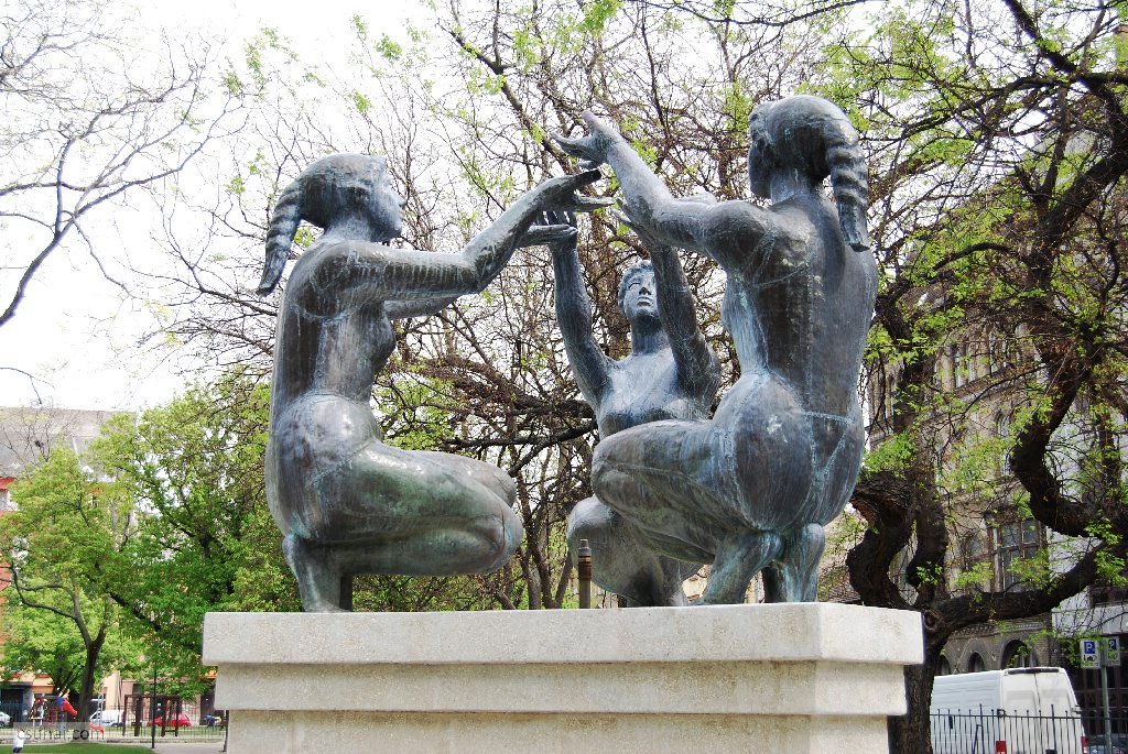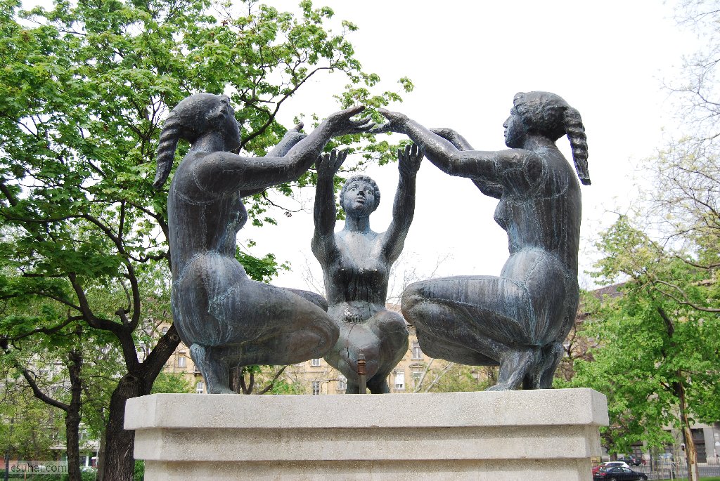 A címben a népszerű gyermekdal harmadik sorát idézem, és abban bízom, hogy az olvasónak rögtön, ahogy meglátja, beugrik majd az első sor. De az első sort címként nem használhattam, mert nem egy kislányka van, hanem az első szobornál három, a másodikon meg öt, nem is feltétlenül kislánykák ők, akik itt következnek, és ugyan valóban körben állnak, de nem benne a közepében, hanem maguk képezik azt a bizonyos kört.