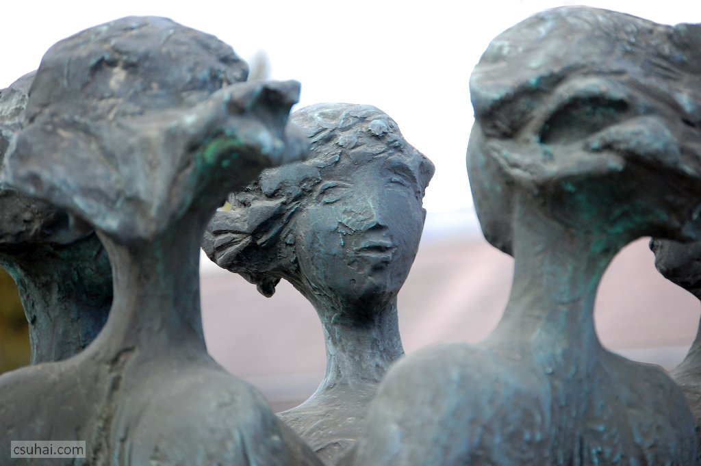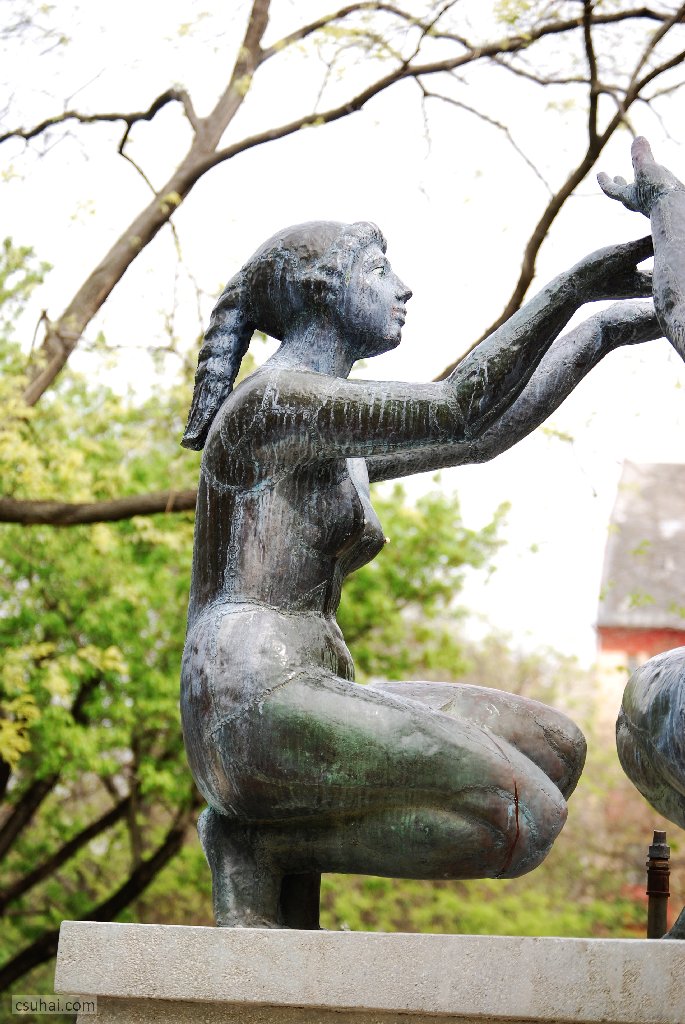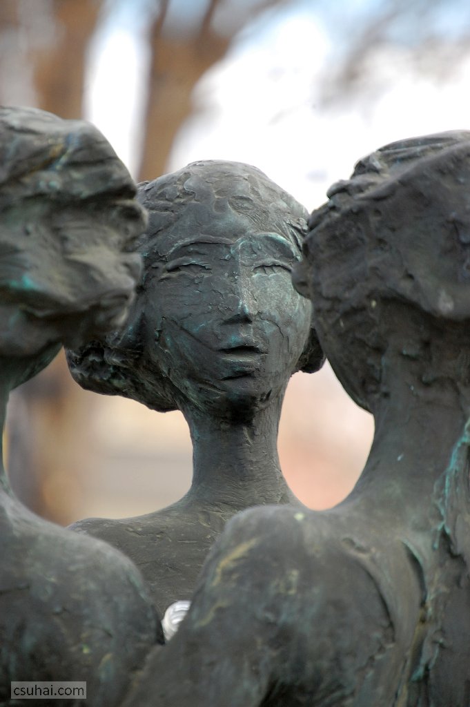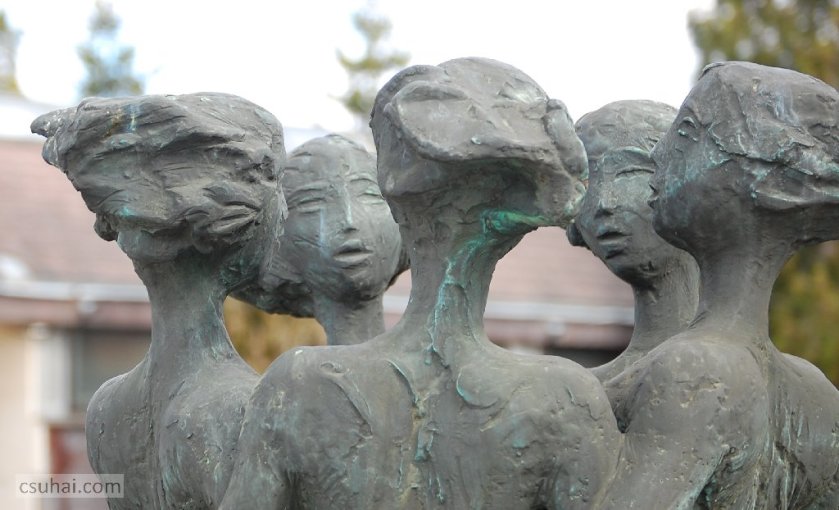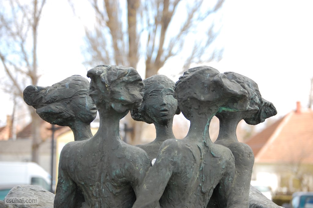 Csikai Márta sárospataki szobrára ugyanez nem ugyanígy vonatkozik, alakjai hiába vannak a szabályos geometriai rendbe, a köralakba belehelyezve, és hiába figurálisak,