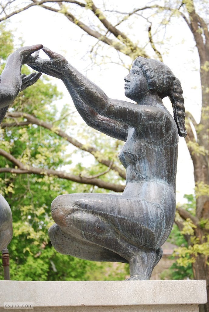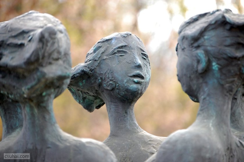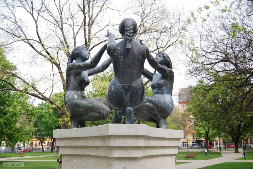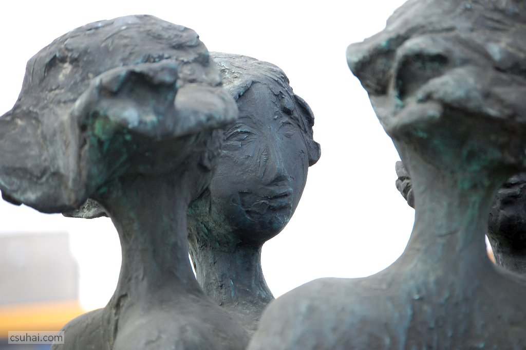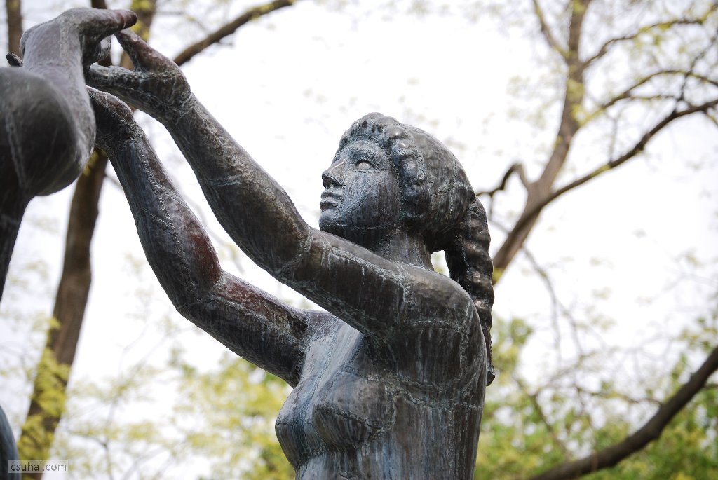 Csikai Márta sárospataki szobrára ugyanez nem ugyanígy vonatkozik, alakjai hiába vannak a szabályos geometriai rendbe, a köralakba belehelyezve, és hiába figurálisak,