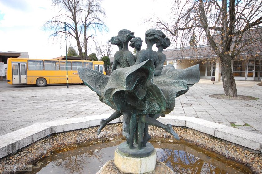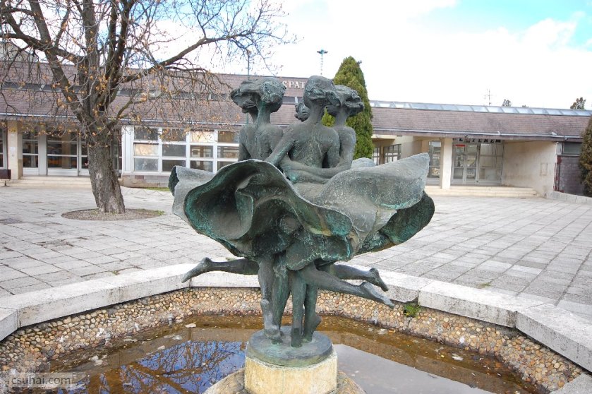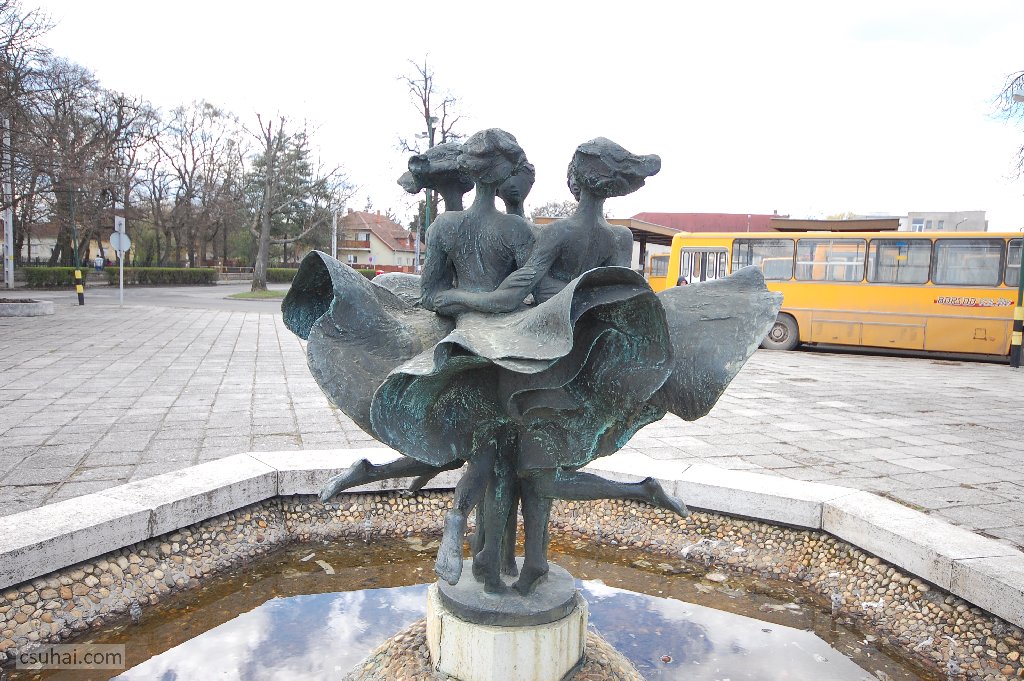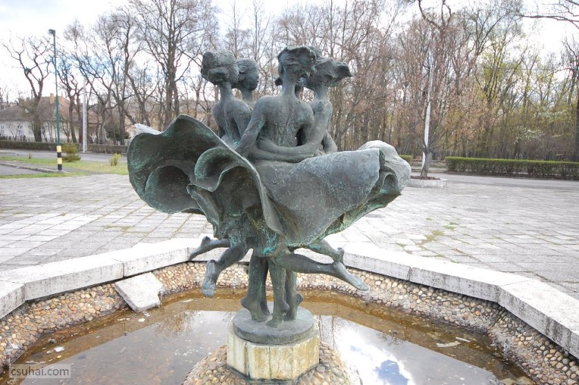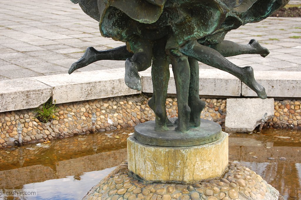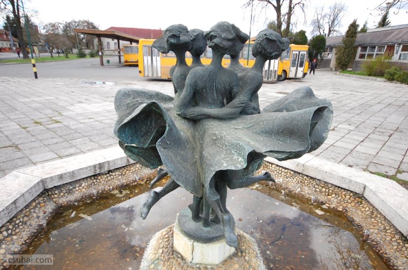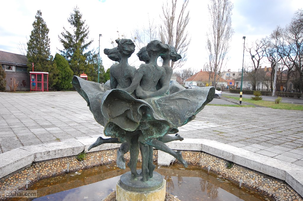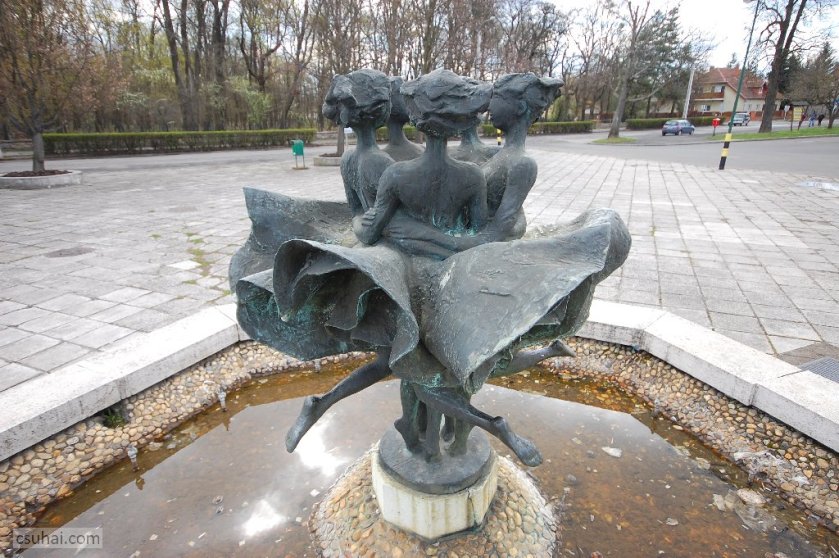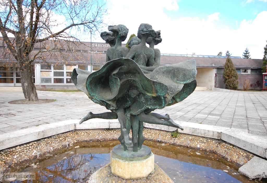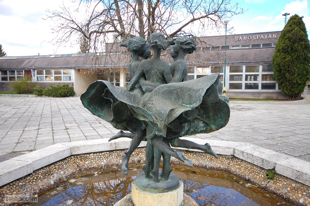 A bejegyzés másik főszereplője Csikai Márta a sárospataki busz- és vasútállomáson álló Táncvirág-szökőkútja, ezt a szobrot itt 1988-ban állították fel. Látható, hogy a két kompozíció többé-kevésbé ugyanannak a kornak a szülötte, noha Makriszé öregkori kamaradarab, egy tekintélyes, a monumentalizmust mindenkor szem előtt tartó szobrászati pálya lezárás-félesége, Csikaié viszont saját pályáján a legjobb, legkreatívabb évtized, saját harmincas-negyvenes éveinek egyfajta összegzése, mind a főtémát (a táncot), mind pedig a közvetlen megformálást (a többalakosságot) tekintve. A két szoborcsoport jellegadó figuralitása ugyanabba a rendbe, a köralakba van szervezve, kiemelt jelentősége van a figurák egymás közötti viszonyának és tulajdonképpen ugyanekkora fontossága magának a geometrikus elrendezésnek is. És noha mind a kettő vizes szobor, szökőkút, sikerült úgy fényképeznem őket, hogy víznek éppen nyoma sem volt körülöttük (ha az előző napi sárospataki eső nyomait nem számolom). De erre nem vagyok büszke.