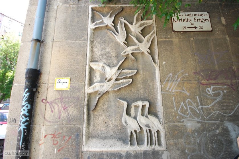 29 Egyelőre ismeretlen alkotó gólyákat ábrázoló reliefje Lágymányoson