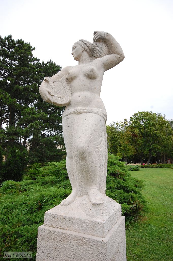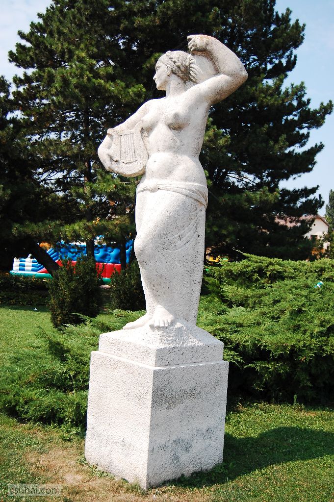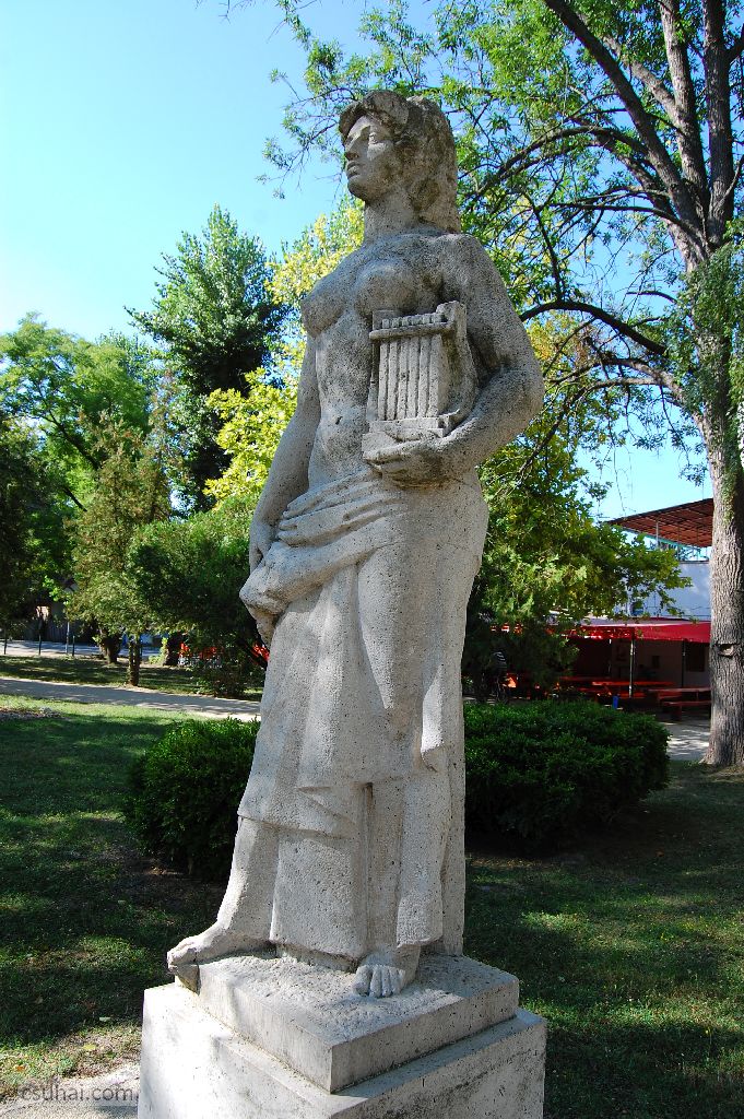 Nem fogom feltenni szavazásra, melyikük a jobb vagy sikerültebb dolog, az egész poszt célja végül is az, hogy felhívjam rá a figyelmet, egymástól úgy tíz évnyire és nagyjából ötven kilométernyire áll két lantos nőszobor (a múzsáktól és Festetich György ünnepségeitől most eltekintek inkább, mert magát a lantot csak halvány, az időben már elmosódó szimbólumnak érzem), és ők nővérei egymásnak —