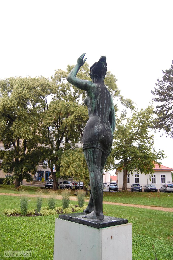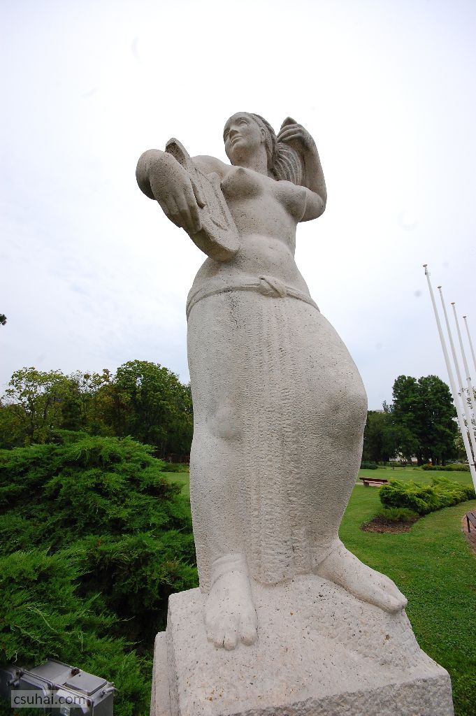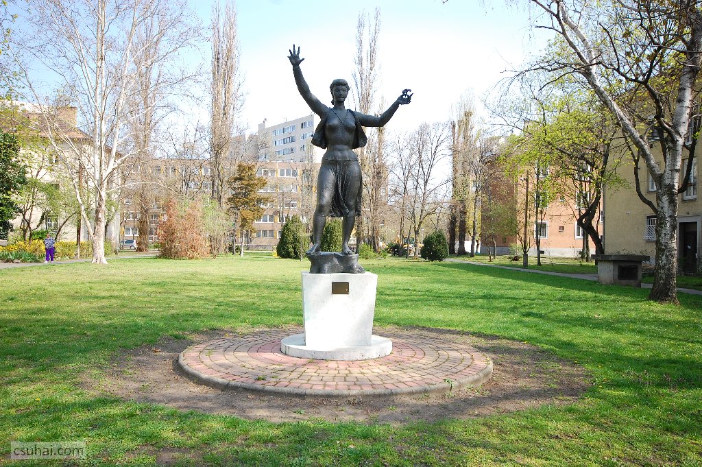 ütőjét vesztett teniszezőlányon (mely eredetileg az ötvenes évek elején a budapesti metró Népstadion állomásához készült; komlói alumíniumváltozatát 1956-ban, a mészkő verziót 1967-ben Dunaújvárosban állították fel a helyi stadionokban, ez utóbbin az ütője is megvan) kívül saját képek híján itt csak egyet tudok megmutatni,