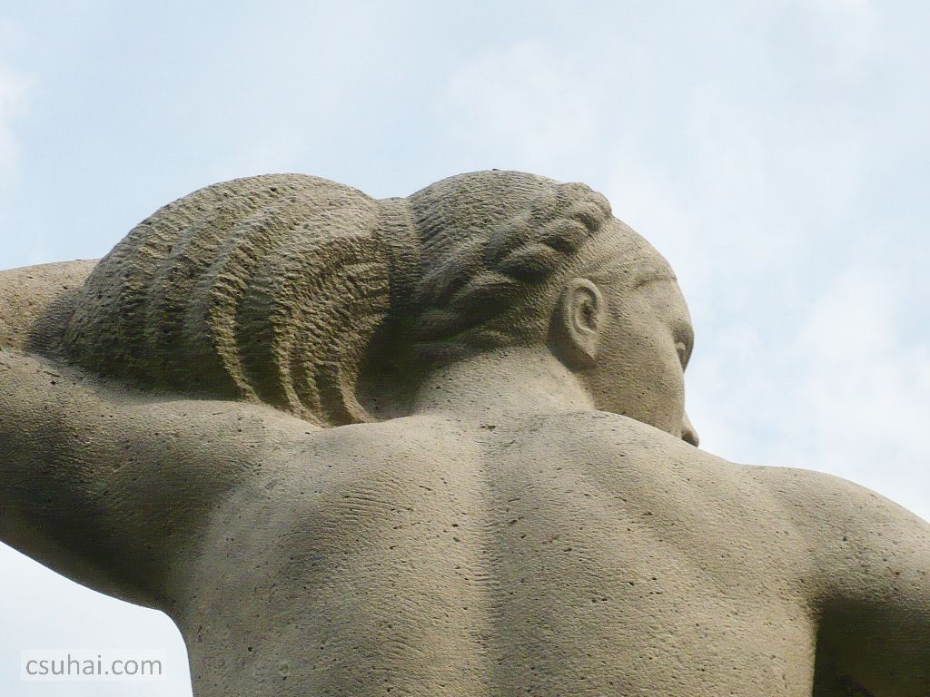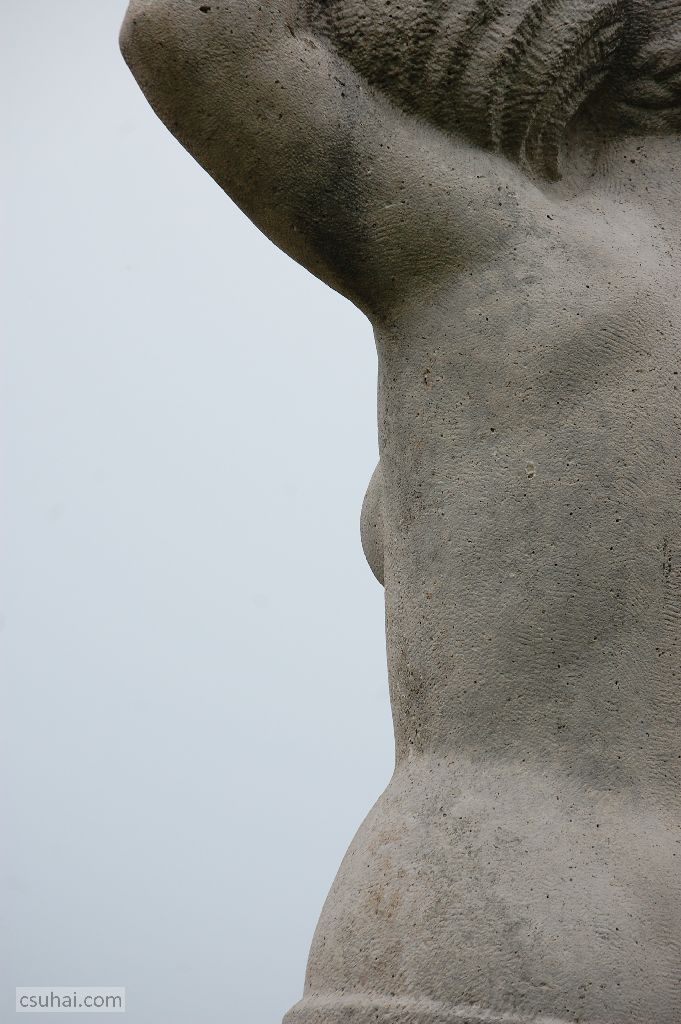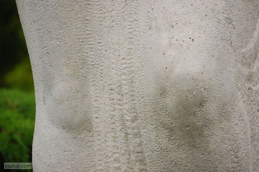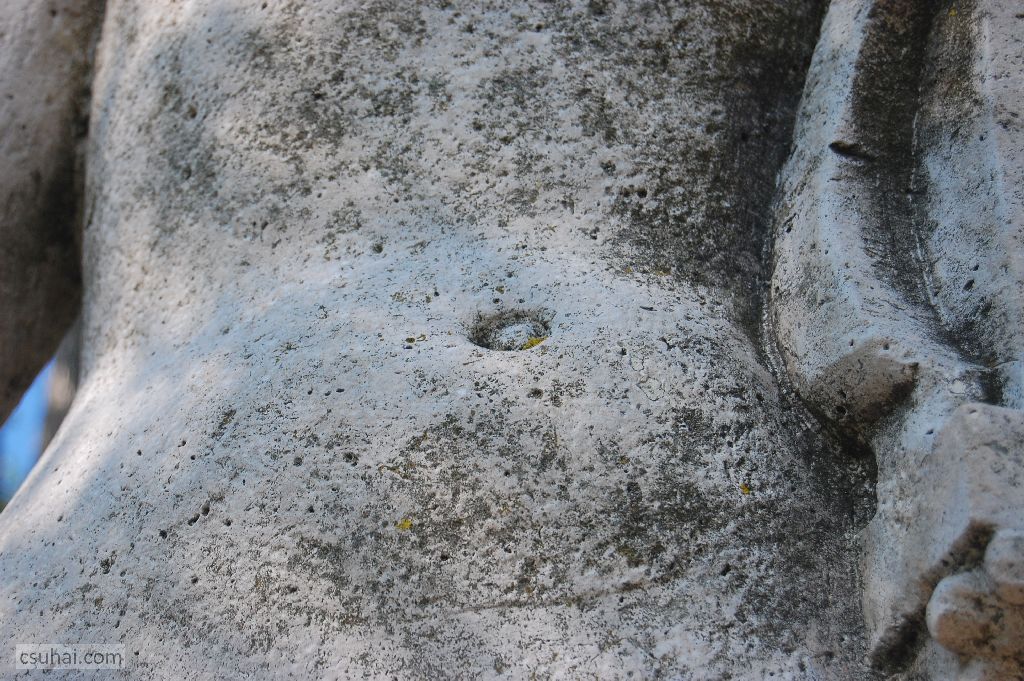 A két szobor lényegi különbségét talán éppen ennek a két köldöknek a másmilyensége érzékelteti — Keszthelyen, Kocsis András nőalakján a köldök a gyönyörűen domborodó hasba már-már anatómiai pontossággal illeszkedik,