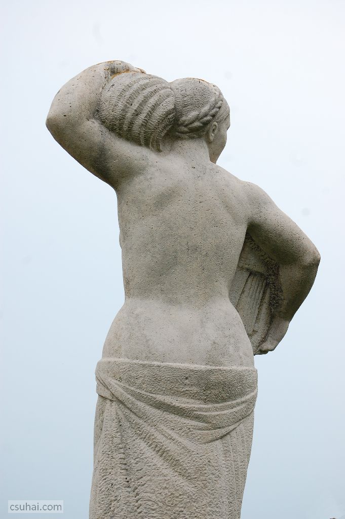 A körbejárásnak a legfőbb tanulsága a már elmondottakat igazolja. A két álló nő közül a korábbi, az ötvenes-hatvanas évek fordulóján készült keszthelyi szobor klasszikusan kerekebb, gömbölydedebb, egész mozdulatában, a finoman megemelt bal lábban és a behajlított térdben benne van egyfajta mozdulatlan dinamika, amit a fej fölé emelt, az összefont hajzattal babráló bal kar teljesít be. A két kar (a lantot felülről ölelő jobb kéz, az alulról a fej fölé felkanyarodó bal) a szobor felsőtestén amolyan hatalmas fekvő S betűt képez — az egész szobor statikusságában ott van a várakozó dinamika, amihez társul a finoman megrajzolt keletiesség, Kocsis nőszobrainak gyakori jellegzetessége. Még egy jelentős különbség van a két szobor között, mégpedig az öltözetben (bár mindketten félmeztelenek): Kocsis nőjén a ruha inkább csak a ruhátlanságot még jobban kiemelő vékony lepel, Pándi Kissén viszont antikizálónak ható, görögös viselet.