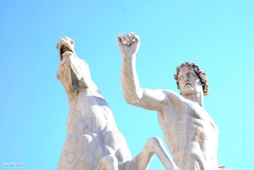 a két lószelídítő, egyes feltételezések szerint Castor és Pollux szoborábrázolása.