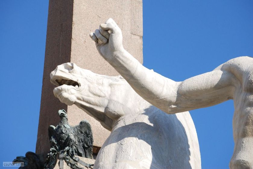 Úgyhogy vissza a Quirinale térre (valójában is ez történt, a lószelídítőket később láttam, mint a Mattei-palota szerencsétlen sorsra jutott összeszerelt férfiait), járjunk a végére annak, amibe belekezdtünk.