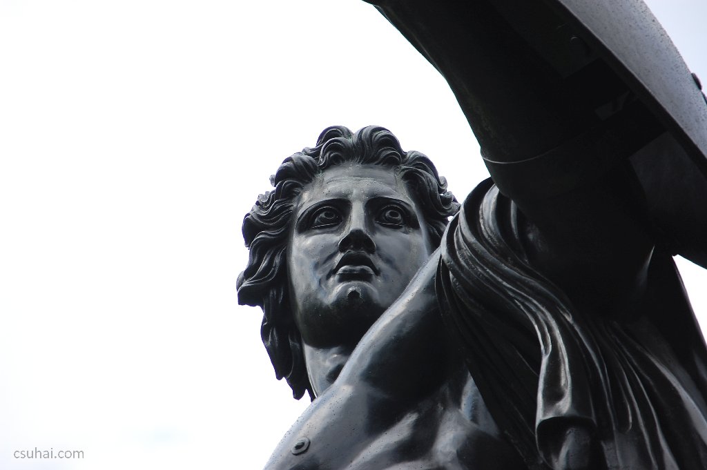 hogy azon túl, hogy a szobor a napóleoni csatákban zsákmányolt francia ágyúk anyagából lett kiöntve, többé-kevésbé szolgai másolata a római Quirinale előtt álló egyik lószelídítő figurának, továbbá a brit főváros első meztelen férfit ábrázoló szobra volt, amelynek legszembetűnőbb pontjára a szobrász, Westmacott a közvélemény felháborodásának engedve, utólag fügefalevelet volt kénytelen applikálni.