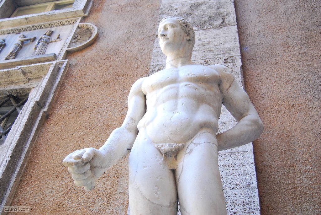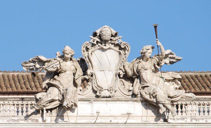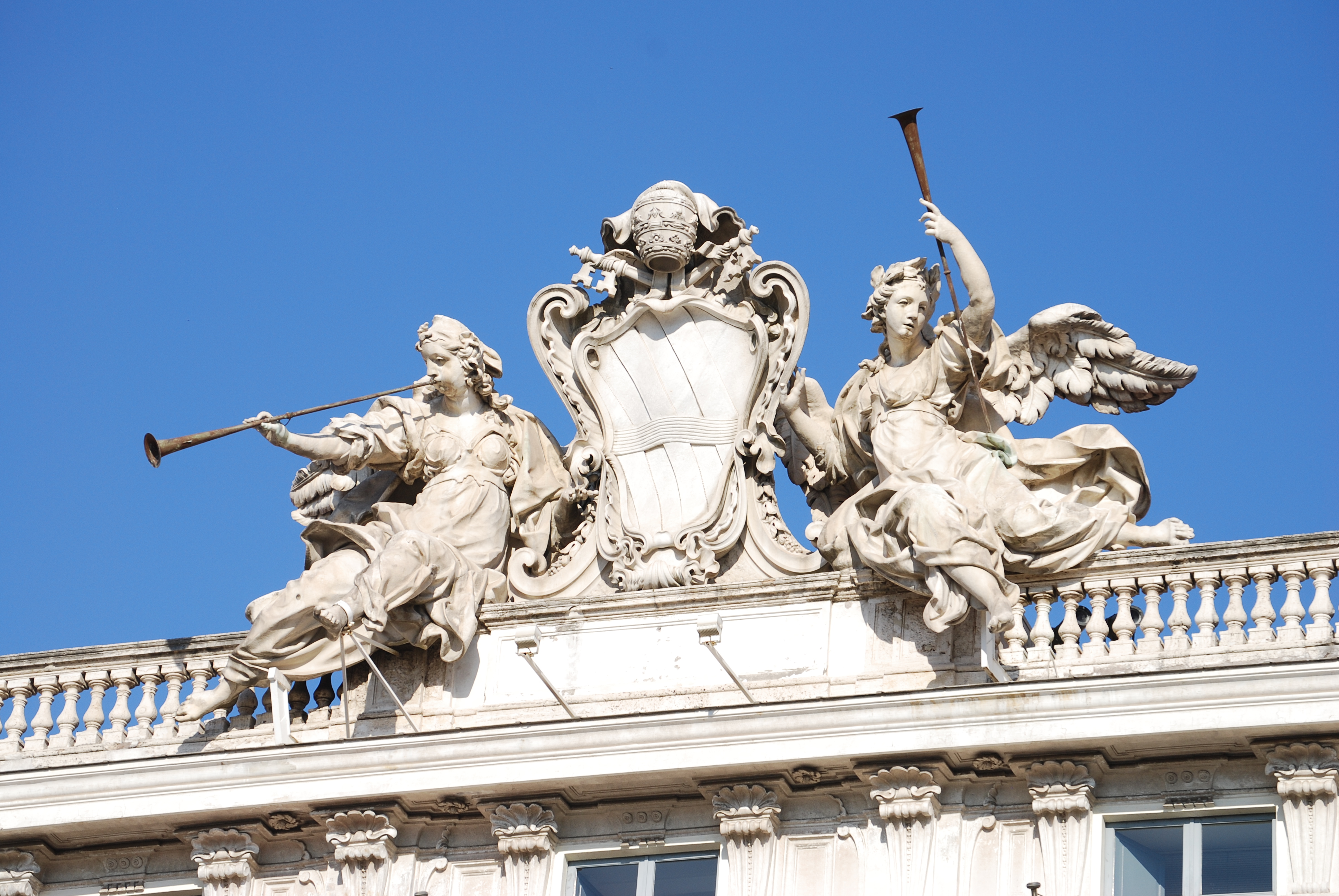 Hazatérésem óta gondolkodom rajta, vajon szerencsés körülmény-e, ha egy szobrokkal foglalkozó blog szerzője igen későn, élemedett korában jut el először Rómába. A blogot illetően alighanem igen. Rómában olyannyira átláthatatlanul sok a szobor, hogy ha mindezzel előbb találkozom, bizonyára óvatosabban vágok bele az elején a dolgokba; még az is lehet, egyáltalán nem vágok bele. Háztetők, homlokzatok, kapualjak, kertek; sarkok, ablakkeretek, kirakatok; templomok, magánházak, bankok, éttermek, középületek; utcák, sikátorok és terek, közterek, udvarok, belső falak, lépcsőházak — Rómában megszámlálhatatlan mennyiségben ömlenek az ember szeme elé a főként kőből, kisebb részt bronzból készült három- és kétdimenziós figurák. Szinte eldönthetetlen, hogy a Vatikánnál a Sixtusi-kápolnába és a Vatikáni Képtárba bejutni igyekvők vannak-e többen,