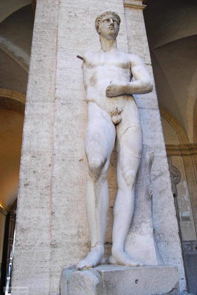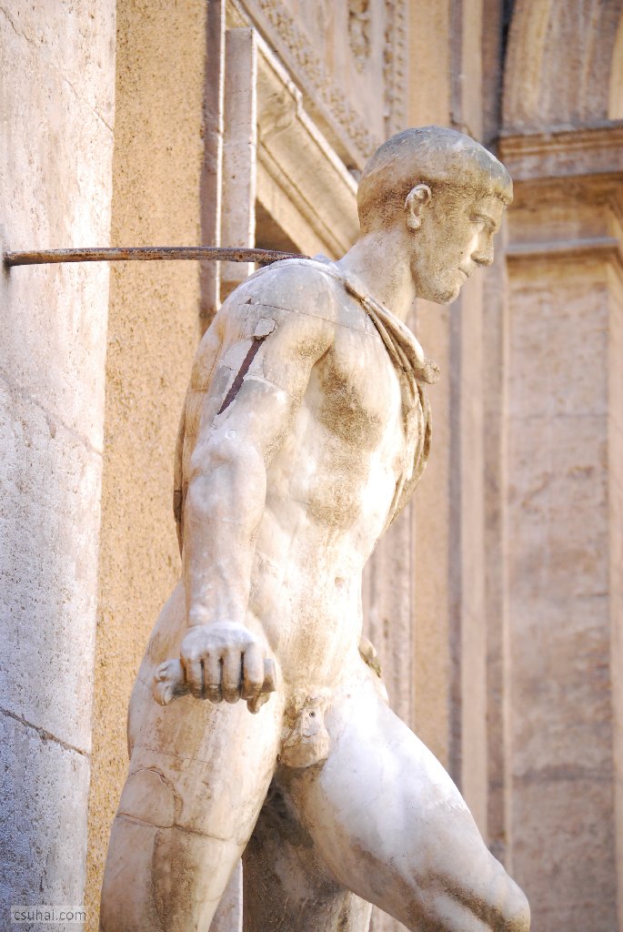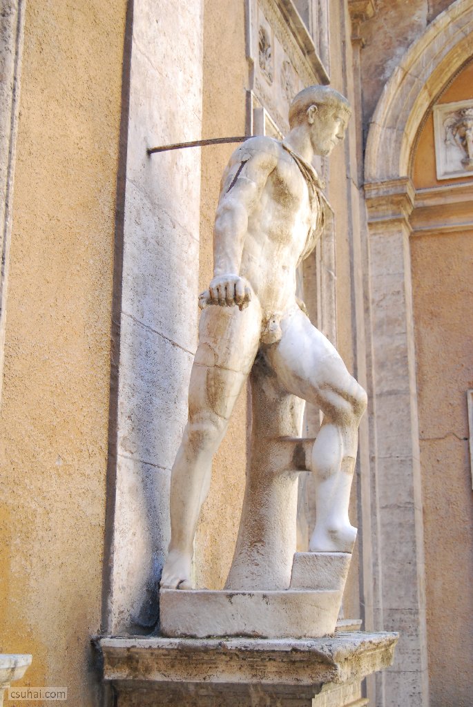 időzünk el annyit a pőre, ám jelentékeny részleteknél. A férfimeztelenség a római köztéren mégsem olyan evidens dolog, mint amilyennek ebből a két capitoliumi szoborból látszik, és ezt, valamint az eredetiség hatalmas témáját két közbevetőleges rövid példával szeretném illusztrálni.