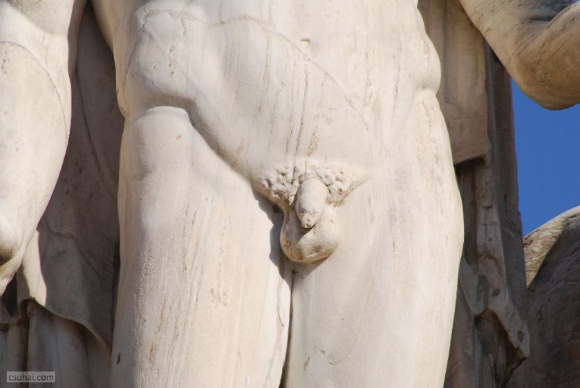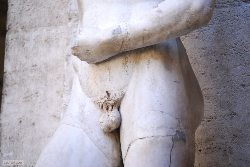 mindegyik szoborról eltávolították, sokszor a legbarbárabb módon eltüntették a legfőbb férfiékességet.