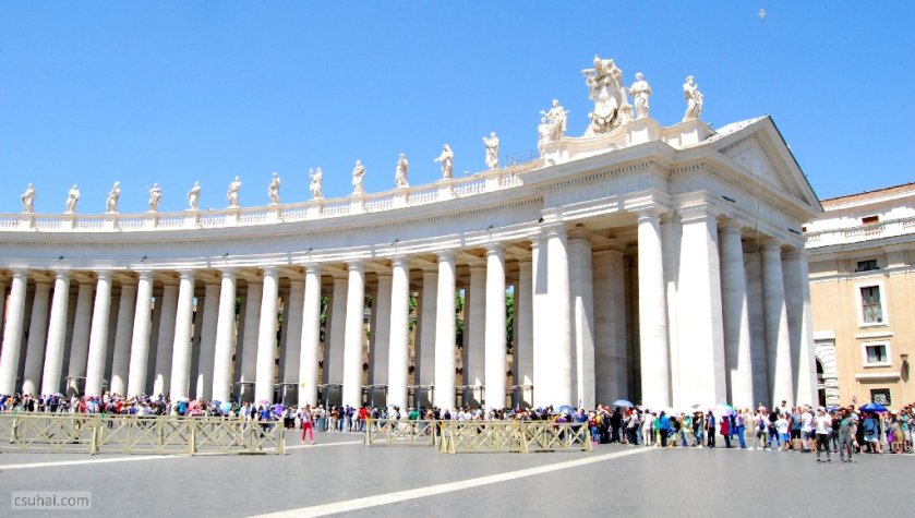 pillantjuk meg először, felfelé kaptatva a Michelangelo tervezte pompás lépcsősoron, nem pedig úgy, ahogy itt a retorika kedvéért bemutattam, hátulnézetből, és hát tényleg