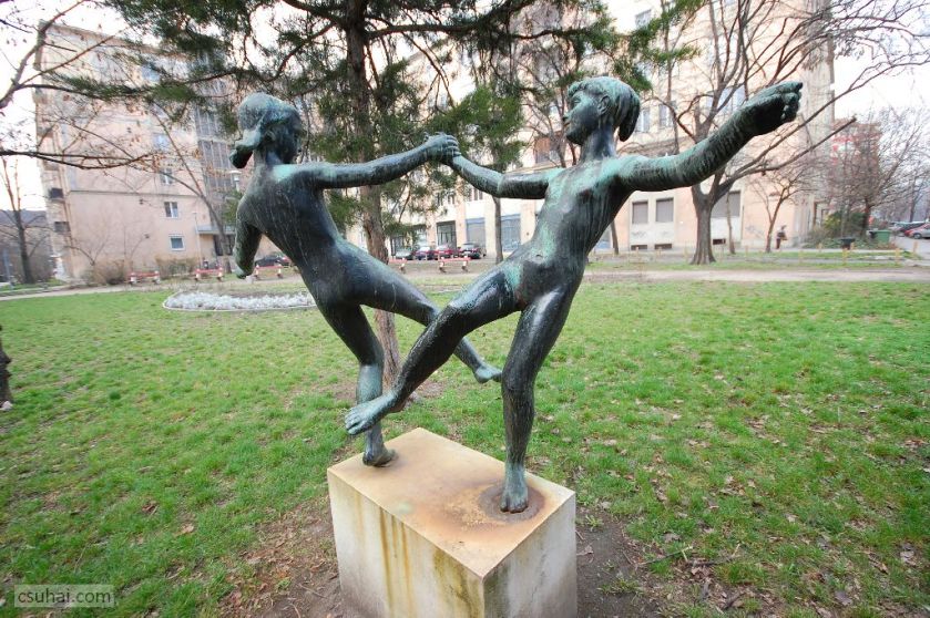 vagy Somogyi Árpád Miskolcon álló 1968-as, összekapaszkodó fiúkat ábrázoló szobrának.