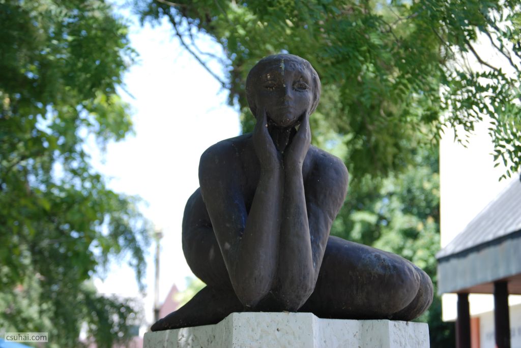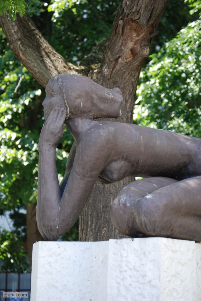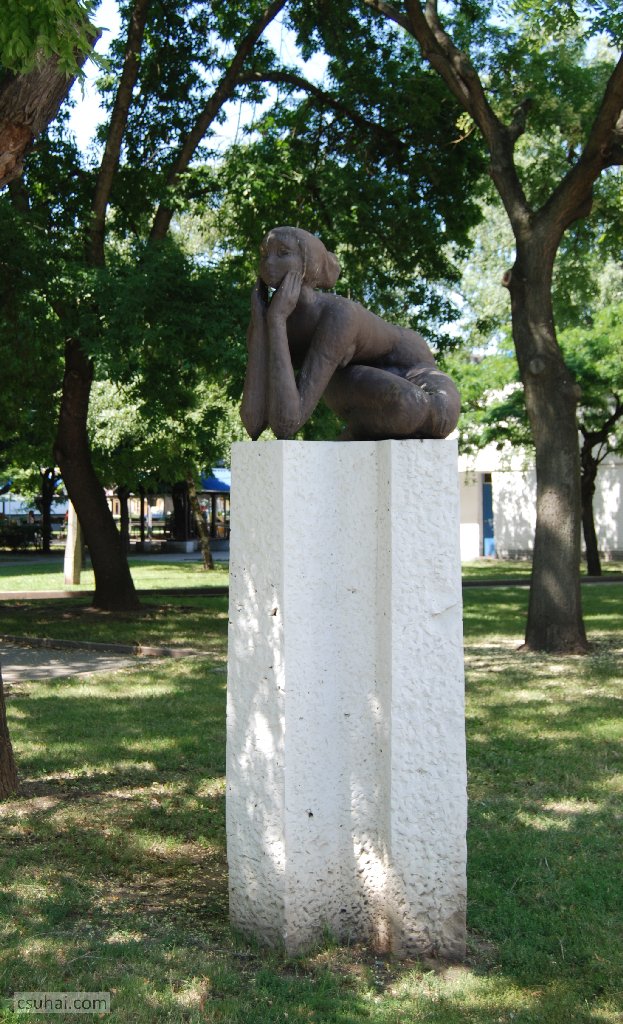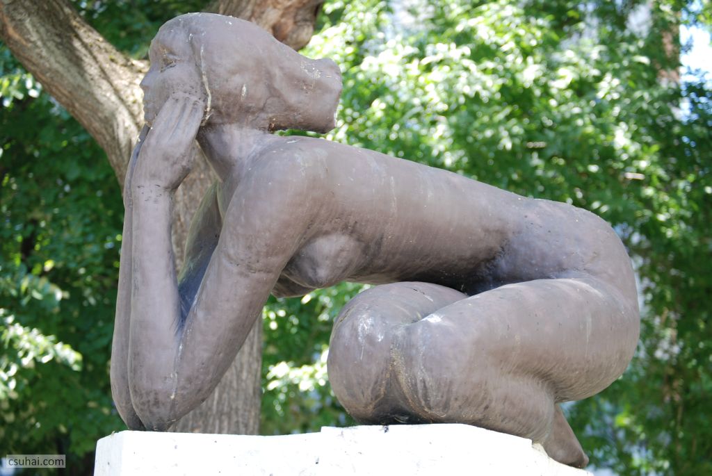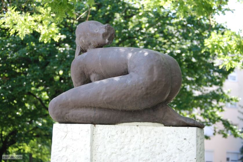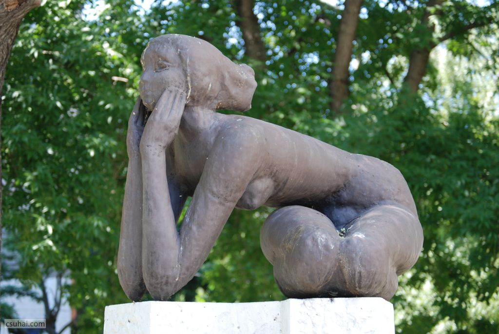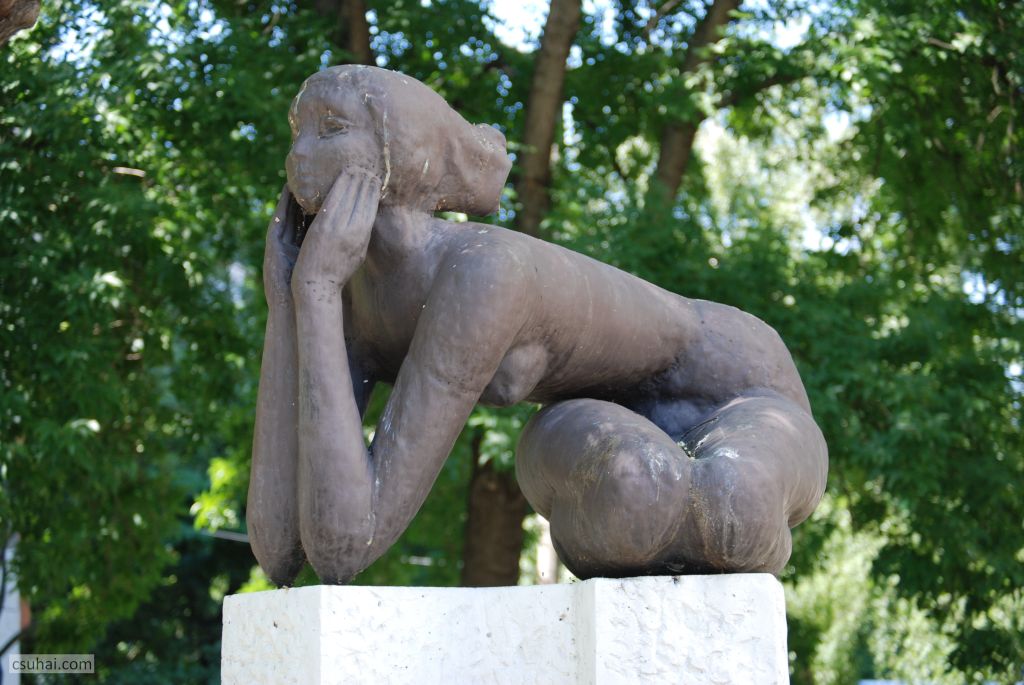 De amiről itt beszélek, amiről a cím beszél, az másfajta álom. Nem kell különösebb matematikai tehetséggel rendelkezni ahhoz, hogy belássuk, a hatvanas-hetvenes évek szocmodern szobrászatába (ennek a blognak a legfőbb témájába) véges számú alkotás tartozik, amelyek egy idő után a számok egyszerű törvénye alapján el fognak fogyni. Nem kell kiemelkedő szociológiai tudás vagy újságolvasói kedv hozzá, hogy tisztában legyünk vele, a fennálló jobboldali kurzus, lévén egy részük politikai vagy erősen ideológiai töltetű köztéri szobor, nem különösebben szereti ezeket a szobrokat, gyakran hagyja veszni vagy tünteti el tevékenyen őket (évente féltucat illan el közülük, sokszor teljesen észrevétlenül). Ahhoz pedig különösebb esztétikai képzettség nem kell, hogy megállapíthassuk, ennek a véges számú műnek a nagyobbik része azért korhoz kötött, múlandó dolog, sok közülük tucatdarab és akad köztük jócskán talmi ócskaság (ezek általában a helyükön maradnak), amit kizárólag az érdeklődő tekintet tud felruházni említésre vagy megörökítésre érdemes tulajdonságokkal (és néha még az sem). Ebben az összefüggésben helyezkedik tehát el ez a második fajta álom: találni valami váratlant, váratlanul jót, jóformán ismeretlent, ami ebbe a halmazba tartozik, és amiről első pillantásra kiderül, ahogy a szókép olyan pontosan mondja, lerí róla, hogy ez bizony ismeretlen vagy kevés figyelemre méltatott remekmű. Ebben az értelemben 2017 nyarának Várady Sándor 1962-ben készített, 1978-ban az akkori Leninvárosban felállított Tiszaszederkényi Vénusz című műve, azóta Tiszaújvárosban Könyöklő lány címen is ismert szobra a beteljesült álma számomra. A helynevek kavargásával tisztában vagyok, de hogy a készítés és a felállítás között miért telt el ennyi idő, ha egyáltalán eltelt, nem tudom.
