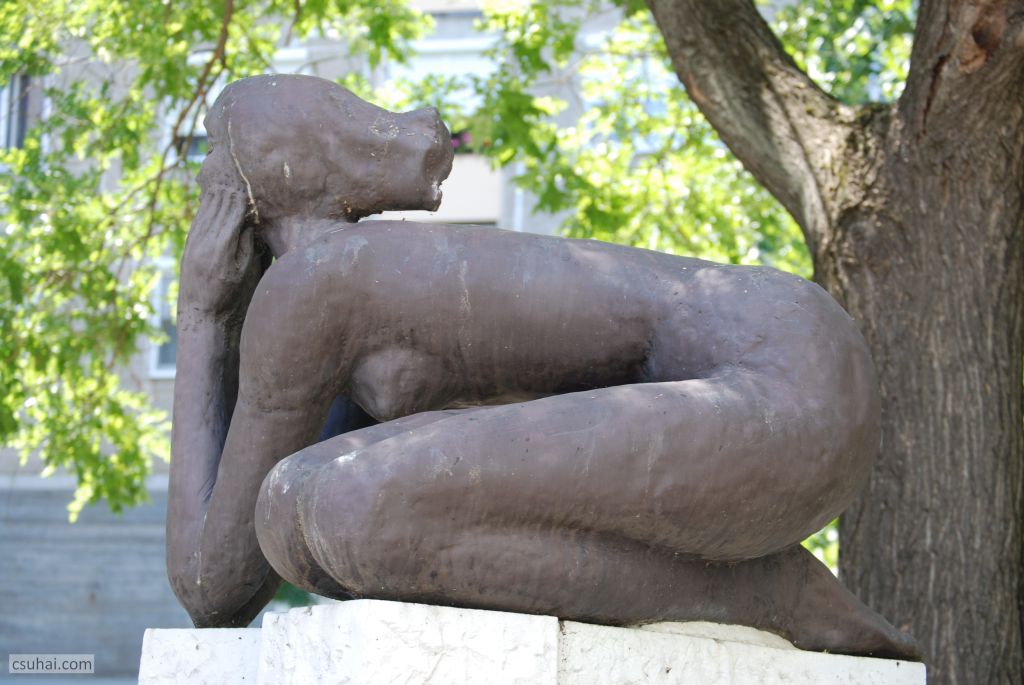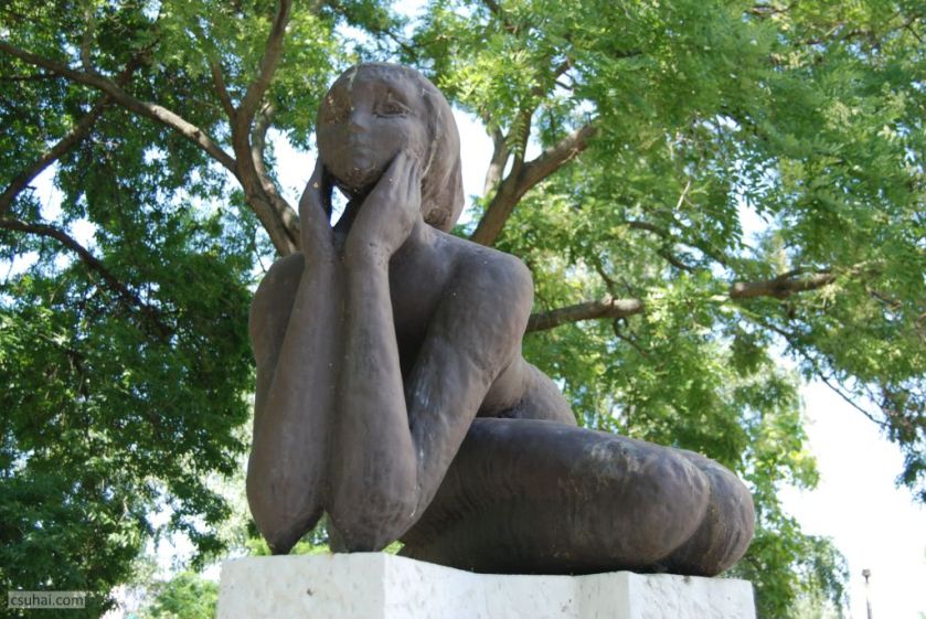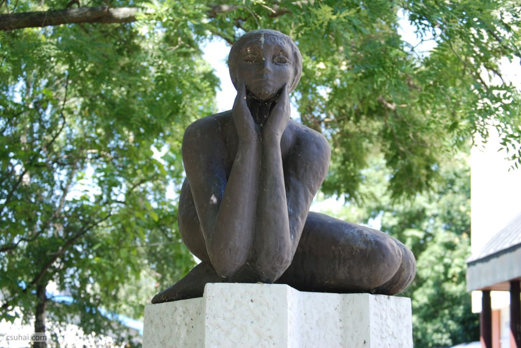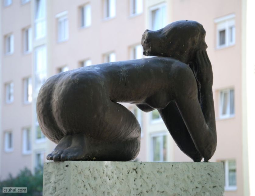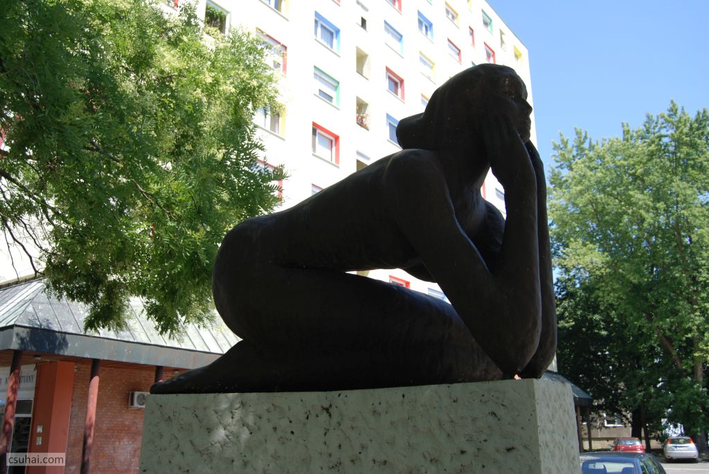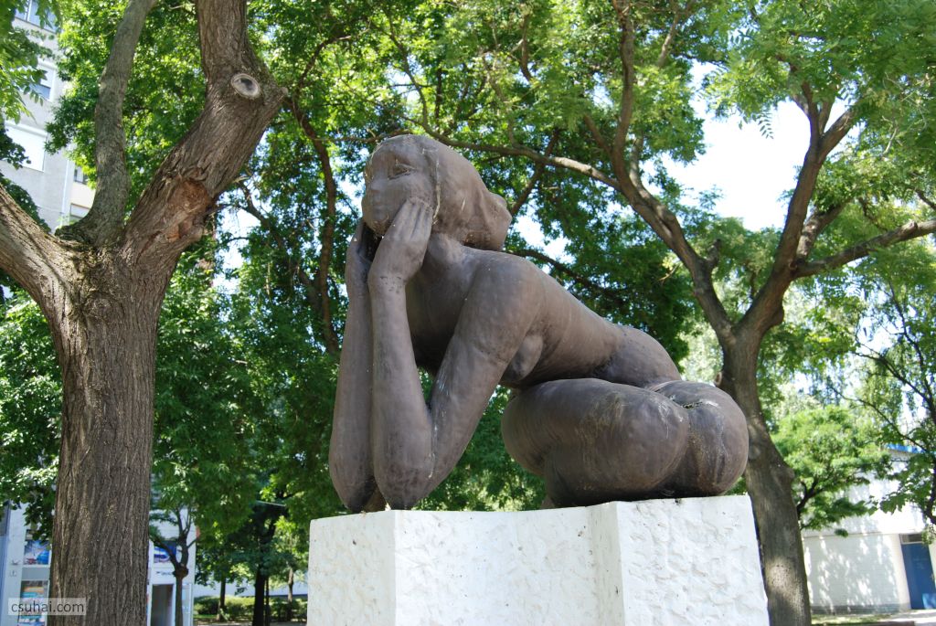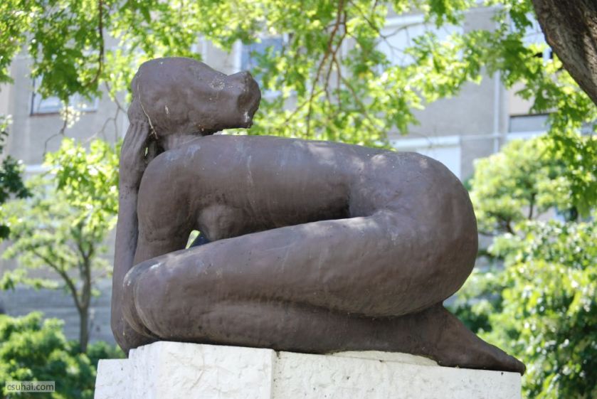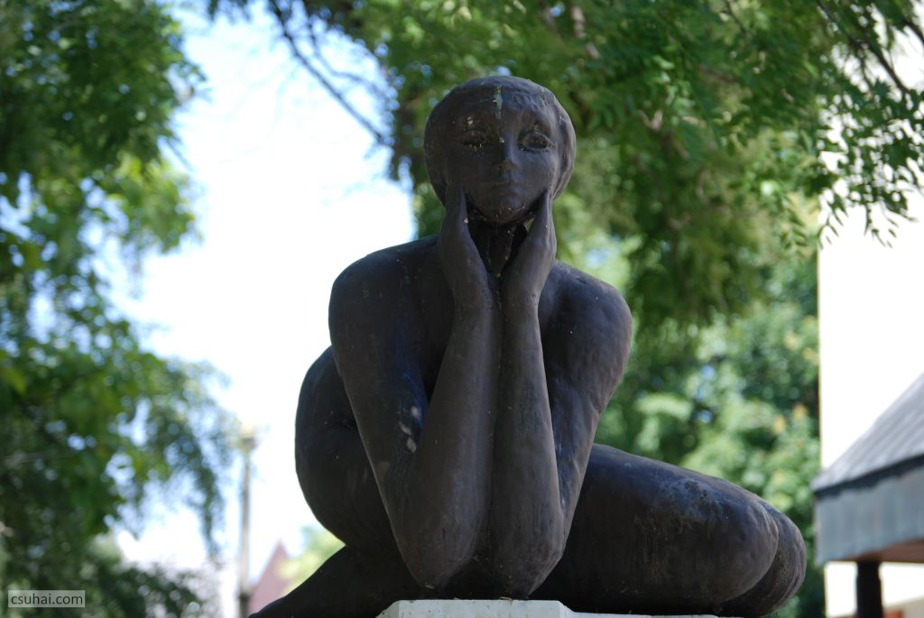 De amiről itt beszélek, amiről a cím beszél, az másfajta álom. Nem kell különösebb matematikai tehetséggel rendelkezni ahhoz, hogy belássuk, a hatvanas-hetvenes évek szocmodern szobrászatába (ennek a blognak a legfőbb témájába) véges számú alkotás tartozik, amelyek egy idő után a számok egyszerű törvénye alapján el fognak fogyni. Nem kell kiemelkedő szociológiai tudás vagy újságolvasói kedv hozzá, hogy tisztában legyünk vele, a fennálló jobboldali kurzus, lévén egy részük politikai vagy erősen ideológiai töltetű köztéri szobor, nem különösebben szereti ezeket a szobrokat, gyakran hagyja veszni vagy tünteti el tevékenyen őket (évente féltucat illan el közülük, sokszor teljesen észrevétlenül). Ahhoz pedig különösebb esztétikai képzettség nem kell, hogy megállapíthassuk, ennek a véges számú műnek a nagyobbik része azért korhoz kötött, múlandó dolog, sok közülük tucatdarab és akad köztük jócskán talmi ócskaság (ezek általában a helyükön maradnak), amit kizárólag az érdeklődő tekintet tud felruházni említésre vagy megörökítésre érdemes tulajdonságokkal (és néha még az sem). Ebben az összefüggésben helyezkedik tehát el ez a második fajta álom: találni valami váratlant, váratlanul jót, jóformán ismeretlent, ami ebbe a halmazba tartozik, és amiről első pillantásra kiderül, ahogy a szókép olyan pontosan mondja, lerí róla, hogy ez bizony ismeretlen vagy kevés figyelemre méltatott remekmű. Ebben az értelemben 2017 nyarának Várady Sándor 1962-ben készített, 1978-ban az akkori Leninvárosban felállított Tiszaszederkényi Vénusz című műve, azóta Tiszaújvárosban Könyöklő lány címen is ismert szobra a beteljesült álma számomra. A helynevek kavargásával tisztában vagyok, de hogy a készítés és a felállítás között miért telt el ennyi idő, ha egyáltalán eltelt, nem tudom.