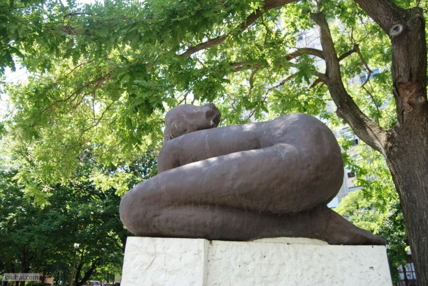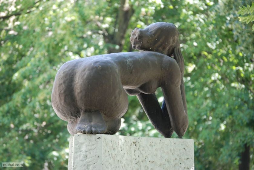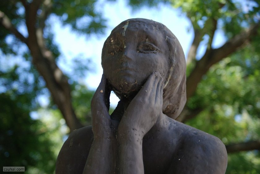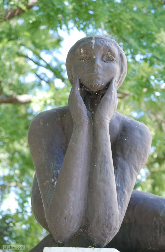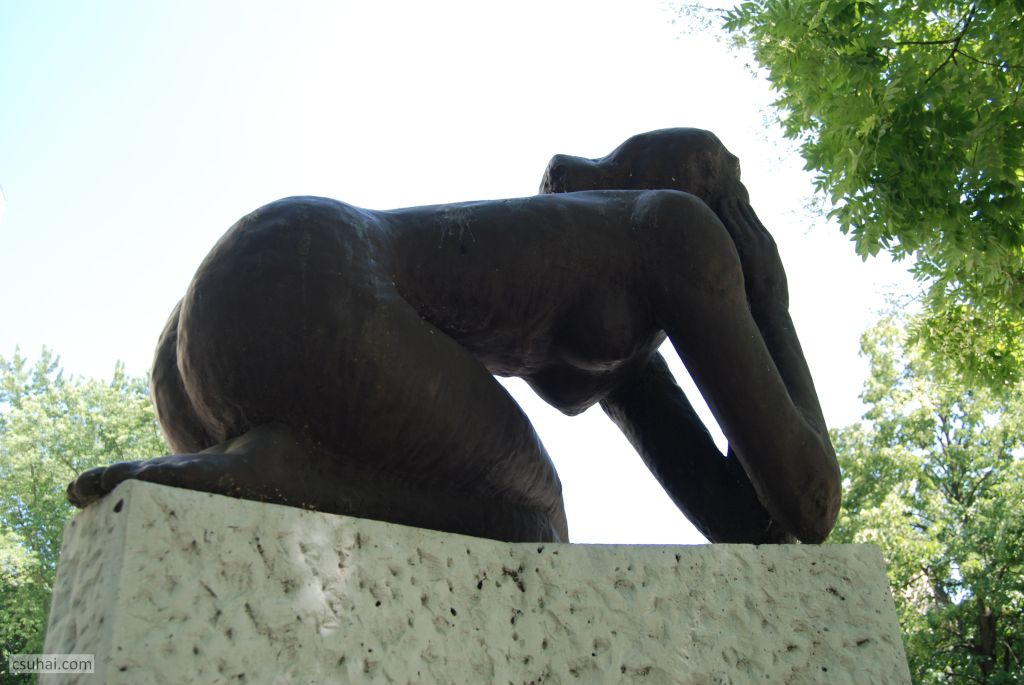 Bonyolultabb persze ez az álom-ügy annál, mint amilyennek első látásra tűnik, hiszen nem arról van szó, hogy egyetlen konkrét szobrot keresnék ilyenkor. Illetve hát ez a helyzet alapesetben viszonylag gyakran fordul velem elő — tudom a szoborról, hogy ott van, képeken sokszor láttam, mindent tudok már róla, és egyszerre csak előttem áll. Ehhez mindig nekem kell mozdulnom, a szobor sosem tud hozzám jönni, van tehát az egész dolognak egy utazás-része is. A blog történetében a magyaróvári Diszkoszvető, Laborcz Ferenc szobra volt nekem a legemlékezetesebb ezek közül, ez a nyúlánk bronzfigura hosszú éveken át csak úgy csinált, mire végre eljutottam hozzá, és hát nemhogy csalódást nem okozott, szinte ismételhetetlen öröm volt a közelében lenni, megszeretgetni. Hasonló azért sokszor történt velem, és rendben, benne vagyok, helyezzük ezeket a megtalálásokat is az “álmok” kategóriájába, bár szerintem pontosabb fogalmazás beteljesített tervnek hívni őket.