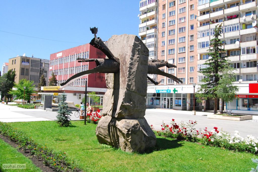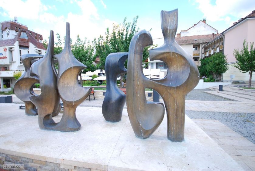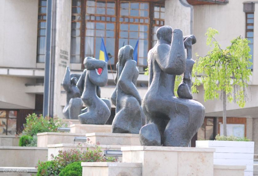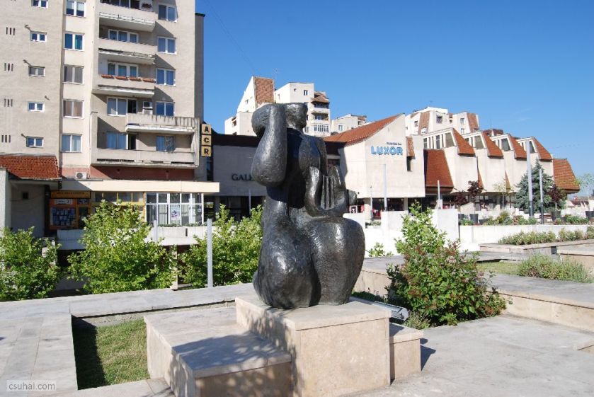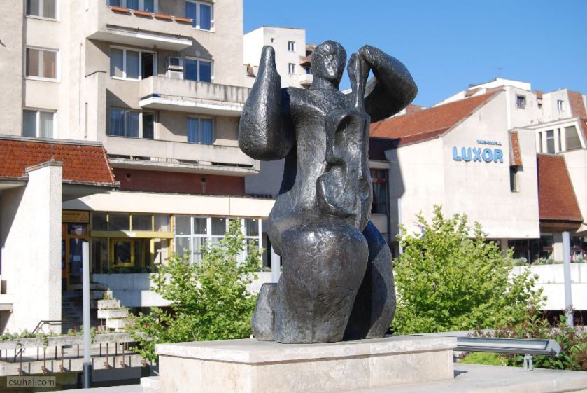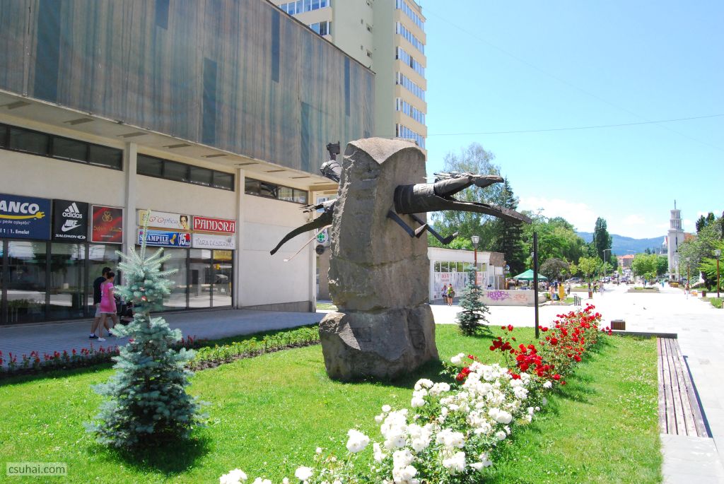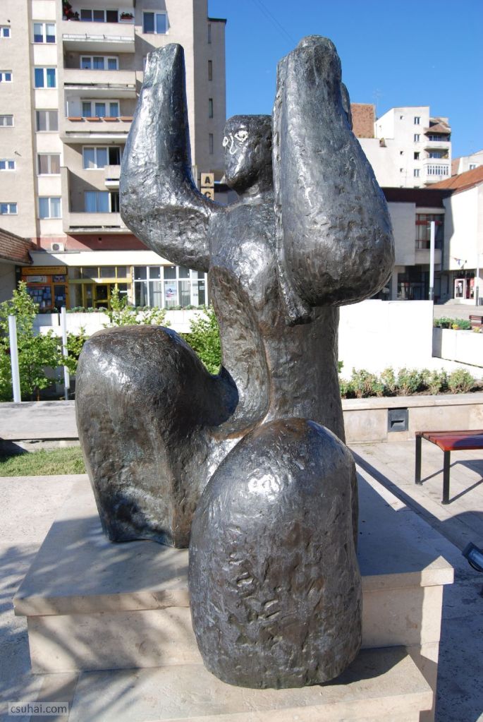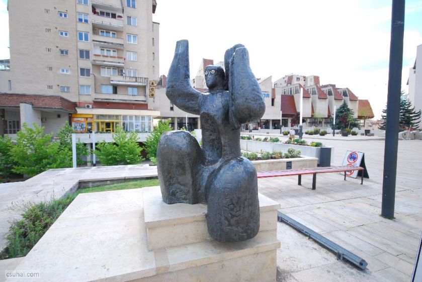 Ebben az évben háromszor jártam Erdélyben. A purista Erdély-fanatikusok azonnal rám fognak ripakodni, hogy Nagyvárad nem Erdély, hanem a Partium. Rendben, megadom magam, akkor Nagyvárad majd külön bejegyzésben jön. Így tehát kétszer jártam 2017-ben Erdélyben. Ez a két út messze alatta marad a kilencvenes évek első felében teljesített éves átlagomnak, eggyel kevesebb viszont, mint az utána következő két évtizedre eső erdélyi utaim száma. A számokba azonban mégsincs különösebb jelentősége belebonyolódni, ez a bejegyzés végül mégsem az utazásokról fog szólni, ahogy a címadáskor még terveztem, hanem szobrokról, és messze nem az összes szemem elé kerülő szoborról, hanem csak azokról, amelyek valamilyen módon beleesnek a blog fősodrába. De messzemenő következtetéseket nem érdemes levonni a tanulságokból: egy másik ország, egy másik sztálinizmus és másik “létező szocialista” kultúrpolitika cenzurális viszonyairól van szó, amit külön nehezít, hogy az erdélyi városok többségében magyar szobrászként köztéri megbízáshoz jutni külön kihívás. A Hargita két nagyobb városa, Csíkszereda és Székelyudvarhely e szabály alól persze némiképp kivétel, de a szabályt erősítő kivételekről már mindent tudunk, nem nagyon érdemes ezt tovább ragozni.