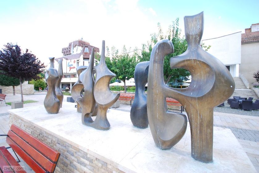 de egymástól valamennyire elkülönülő szobor is, Zagyva László Zene, Tánc, Költészet, Ünnep címet viselő sorozata. Az 1945-ben született Zagyva nem volt még harminc éves, mikor a pályázatot elnyerte, a nyolcvanas években aztán Nyíregyházára települt, és boldogult valamelyest, a városban (és 1990 után Erdélyben is) áll néhány szép köztéri munkája.