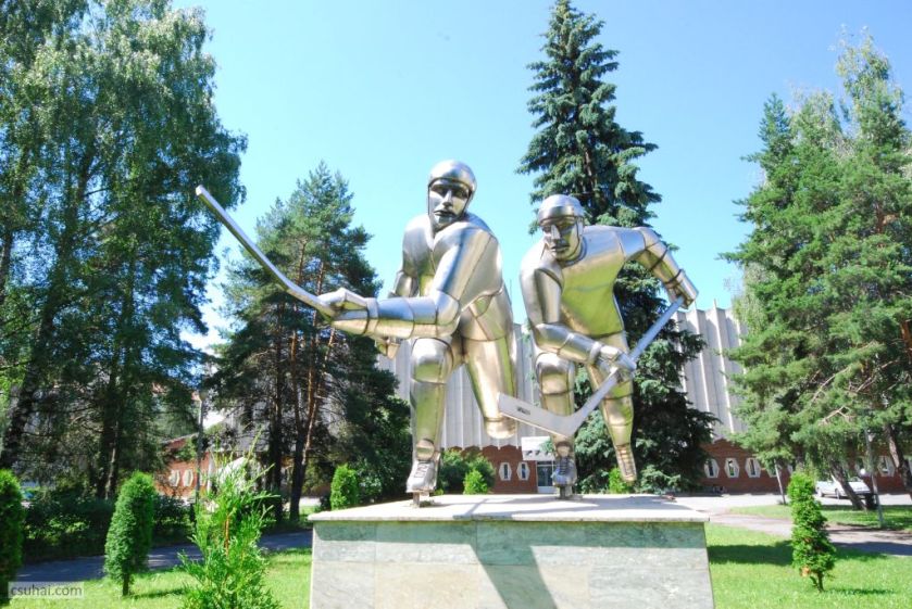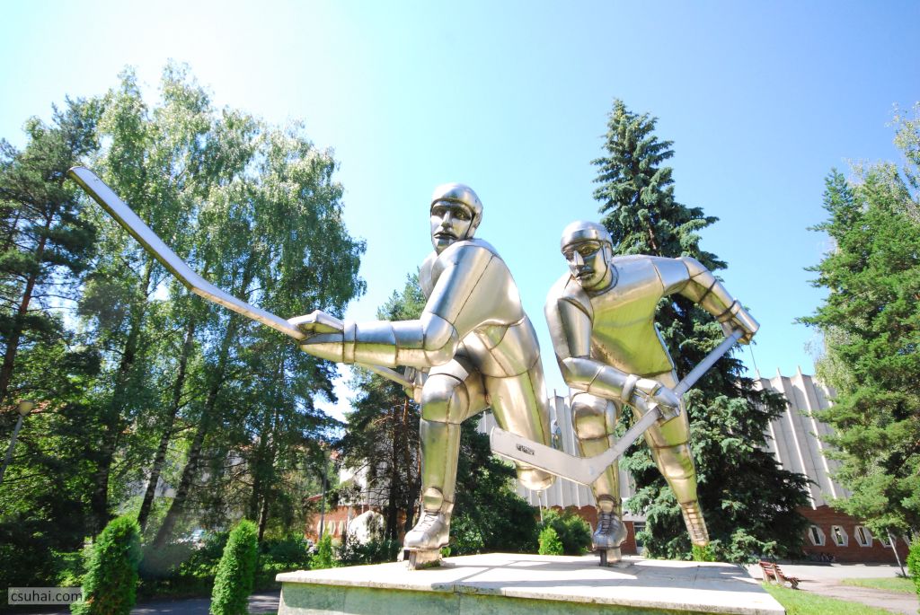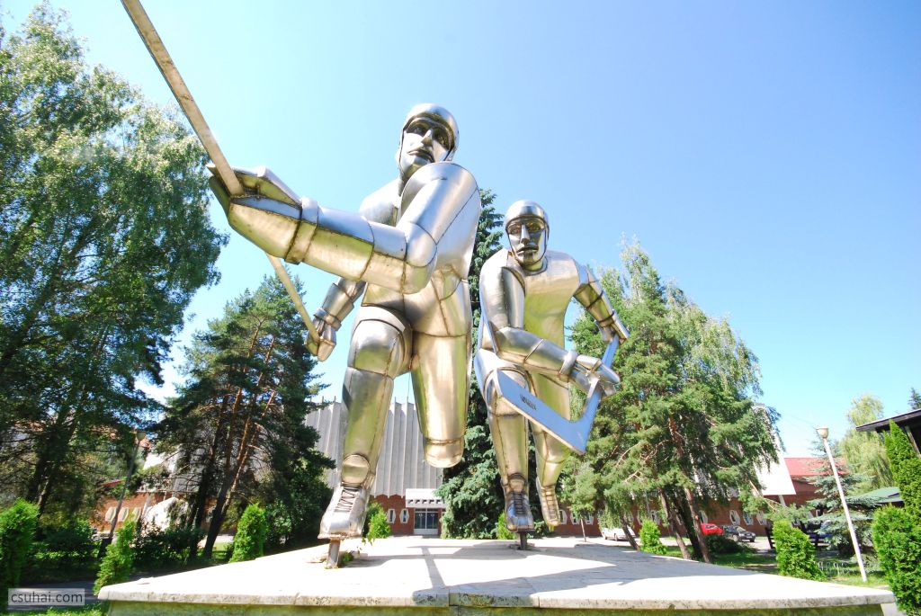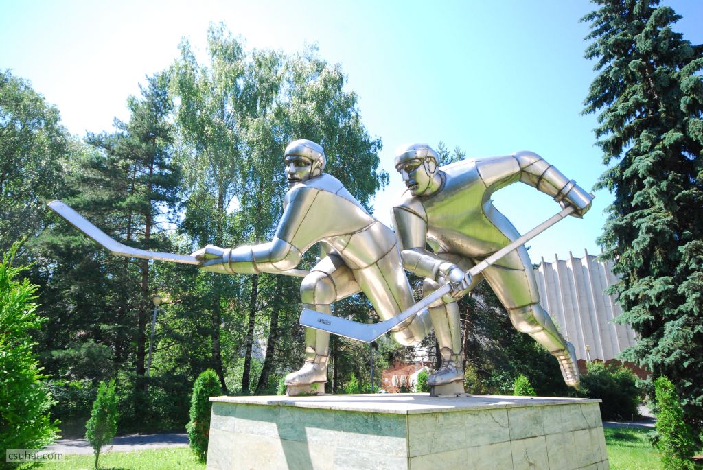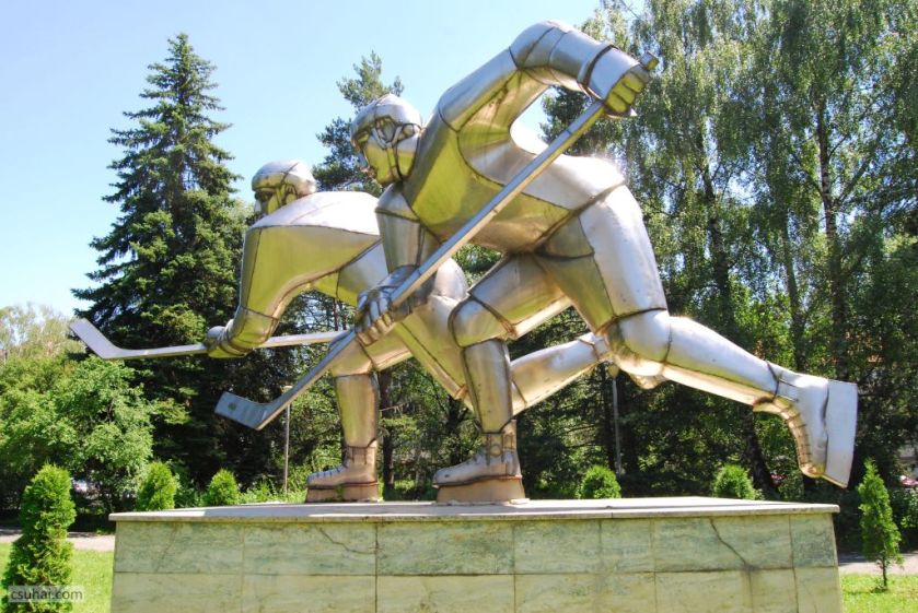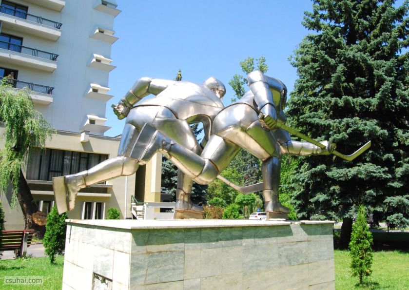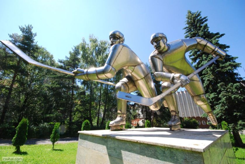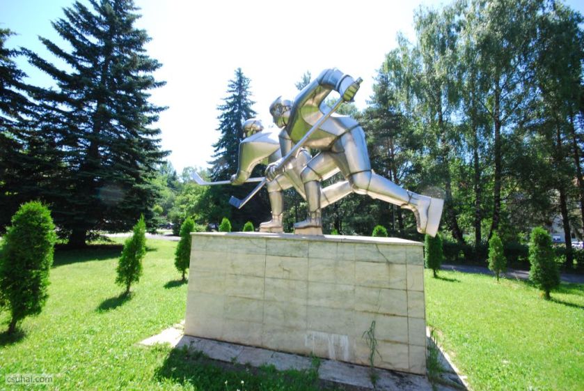 Egyes feltételezések szerint a dinamikus jelenet, a két összecsapó játékos figurája Vákár Lajost és Czáka Istvánt ábrázolja, akik fiatal emberekként 1929 elején többedmagukkal nemcsak kezdeményezői voltak a csíkszeredai jégkorongozásnak és megalapítói a helyi klubnak, hanem hosszú éveken át, egészen az ötvenes évek második feléig játékosai is a csíkszeredai egyesületnek, illetve a román jégkorong-válogatottnak. (Vákár Lajosnak, aki visszavonulása után részt vett az igen sikeres sportklub vezetésében, a szobor mögött álló, róla elnevezett Jégpalota előterében külön domborműves emléktáblája is van.)