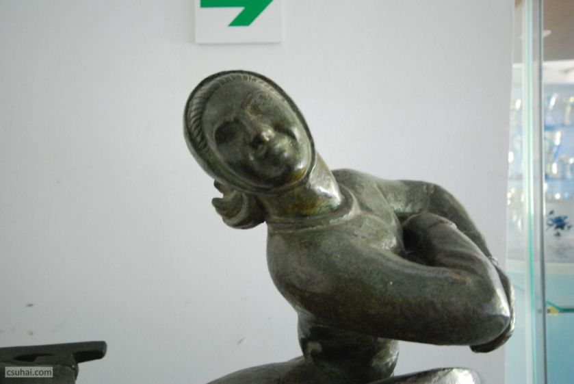 Ennél a szobornál, huszonvalahány évvel későbbi változatban, hagyomány és újítás ugyanolyan együttese munkálkodik, mint a Jégkorongozóknál.