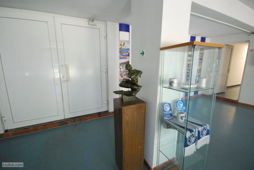 ahol különféle tárlókba állított klubrelikviák és a fentebb már emlegetett Vákár-féle domborműves emléktábla mellett megpillantottam az itt látható csodálatos dolgot.