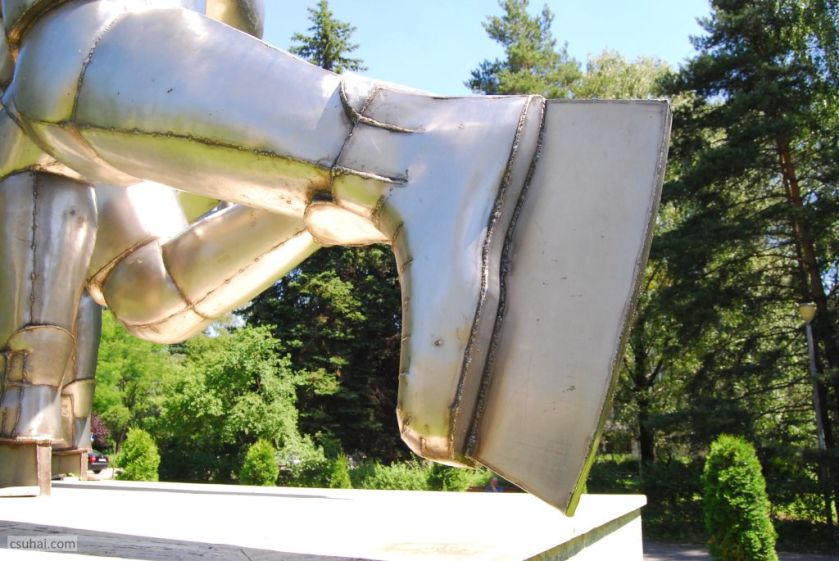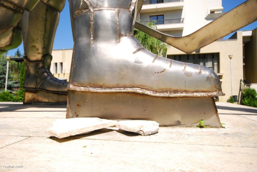Kövér Oszkáré, Csíkszeredában. (Csak zárójelben mondom itt el, hogy nekem, aki az elmúlt években oly sok postaládát, fatörzset vagy egy helyben álló embert véltem már eddig felfedezetlen szobornak, többdimenziós műalkotásnak, e szobor fényképezése közben határozott meggyőződésem volt, a tőle balra álló vöröses modern épület tűzfalán