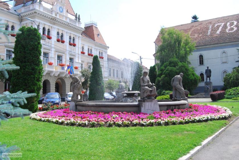 A református templom melletti Szabadság téren, Orbán Balázs szobra előtt