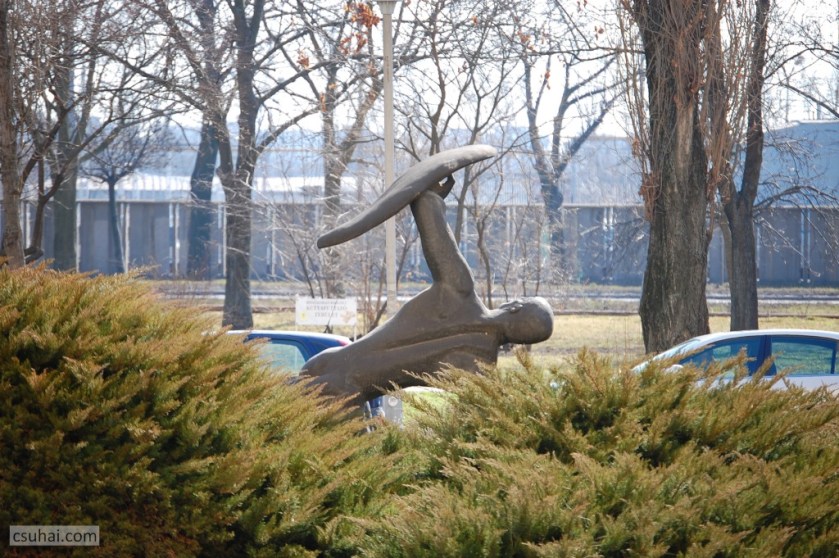 az 1956-ban az akkoriban felépült nagy Kerepesi úti lakótömb egyik teresedésében felállított Spartacus című szobor. A három fenti kép közül az első és a harmadik 2017 tavaszi, a középső hat évvel korábbról való, és nagyjából látható, mi keseríti meg a szoborfényképész életét.