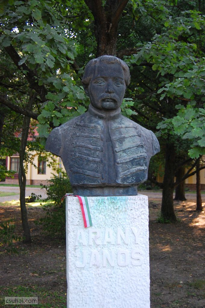 A játékos kísérletezőkedv Megyeri Barna épp soron következő művén, a debreceni Nagyerdő irodalmi pantheonjában 1957-ben felállított Arany János-mellszobron nem látszik,