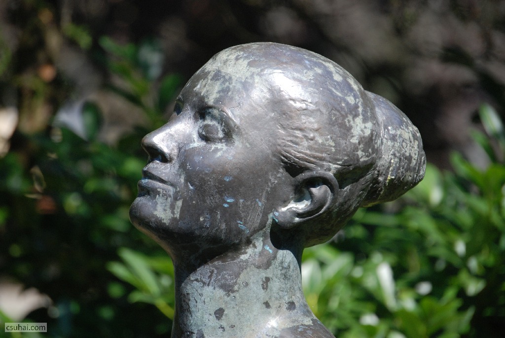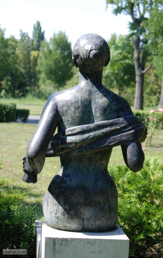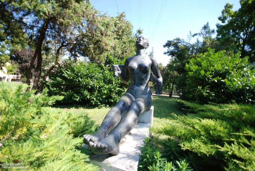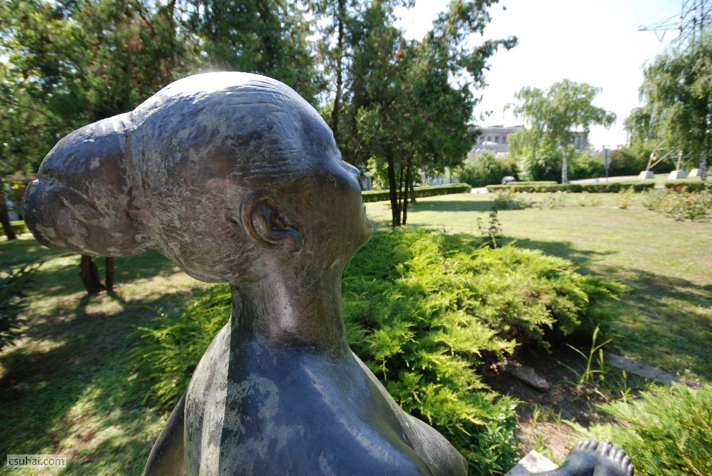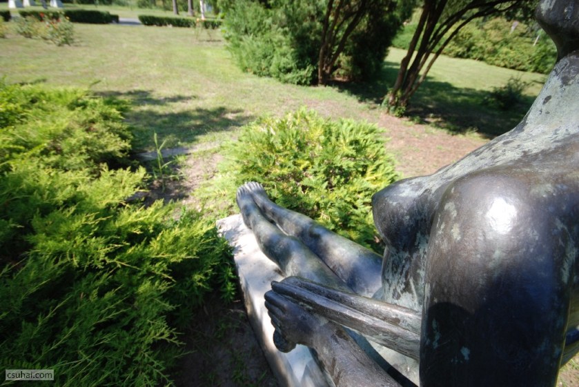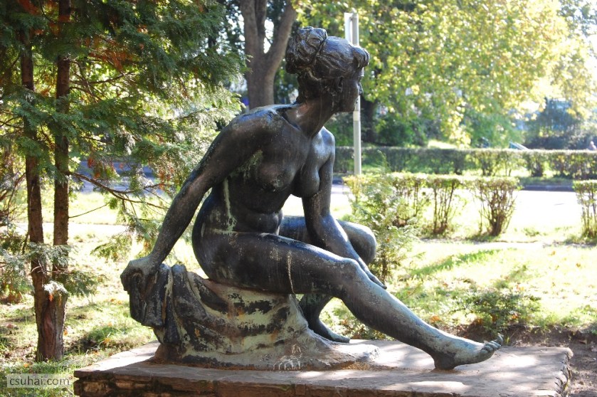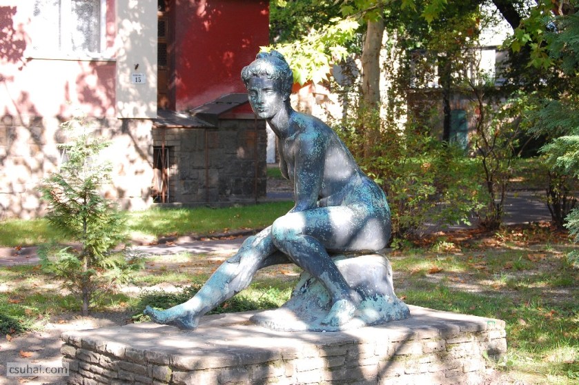 Ez a poszt egyik tavalyi ígéretem következménye, beharangoztam ugyanis Ungvári Lajos a tiszaújvárosi erőmű előtti parkocskában elhelyezett szobrát. De amikor a képekhez jutottam, rájöttem, nem megyek velük sokra, és nem akartam a Mit lát a szobor? 2.0-ás variációját megírni, lentebb majd könnyedén megítélhető, végül legfeljebb úgy is csak az 1.01-es verzió jött volna össze. Na de mire jó, ha az ember merevlemezén van egypár szoborkép tartalékban? Pontosan erre. Ungvári Napozó nőjének sikerült két társat is találnom, az egyiket, Grantner Jenőét Tatabányáról eddig sehogyan sem sikerült beillesztenem a blogba, a másikat, Ferenczy Béni ülő nőjét a Krisztinavárosból az egyik bejegyzésbe már igen, de aztán kivettem onnan, gondolván, lesz annak majd jobb helye is. Hát itt ez a hely, ráadásul a három felállítási évszám (1959, 1961, illetve 1967) szinte magától megad minden magyarázatot, anélkül, hogy nekem tovább kéne szaporítanom a szót.