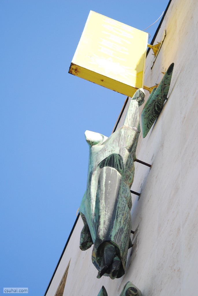 De ezen a helyen nem a végső érv helyzetében van a mondás, hanem a kezdetében, a cím az, és ezt a hevenyészett, tudománytalan nyelvészeti fejtegetést azért iktattam ide a cím kapcsán, mert a posztban a nyelvről, a jelentés átváltozásáról lesz szó. A címadással nyomatékosítani akartam, hogy olyan műfaj következik megint, amely mára kihalt már: a nagy homlokzati falfelületre illesztett, nagy méretű, figurális, háromdimenziós, teljes értékű fali szobor (a kihalást illetően mindegyik jelzőnek jelentősége van, mert ilyen vagy olyan kivételek mindig akadnak), öt példában, az időben visszafelé haladva elbeszélve (ezek közül az utolsót hónapokkal a poszt közreadása után illesztettem legkorábbi köztéri alkotásként a szöveg végére, látni fogjuk majd, miért). Mindegyikük kiemelkedő szobrászati teljesítmény, a korszak vezető szobrászaitól, olyasmi, ami az 1960-as években kifejezetten nagy divatját élte Magyarországon, de az idők múltával mondhatni eltűnt a köztéri szobrászatból. És azt még viccből, iróniával vagy eltúlzással se mondanám, hogy “lelépett a falvédőről”.
